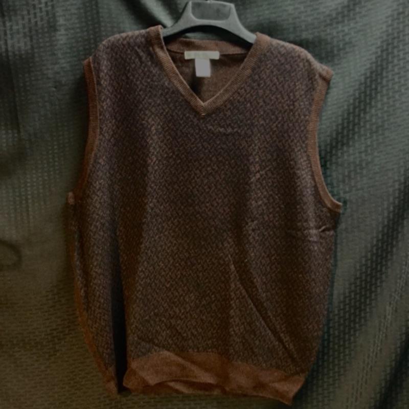 A brown geometric pattern sweater vest. It is in good used condition; see pictures.