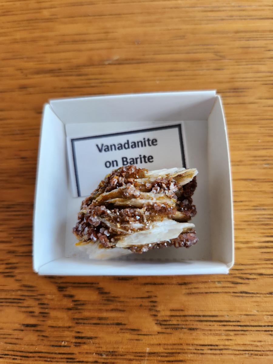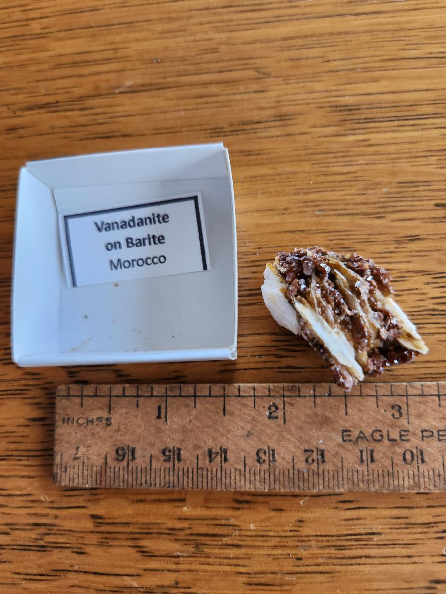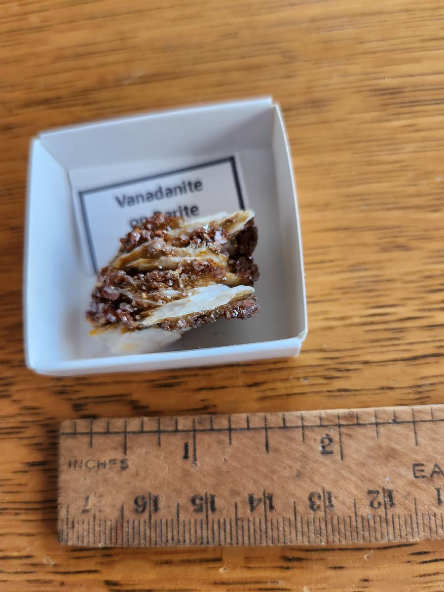This auction lot is for a Geological Rock Specimen. This specimen is an example of Vanadanite on Barite from Morocco on the African continent. See photo for size. Own a piece of the Earth.