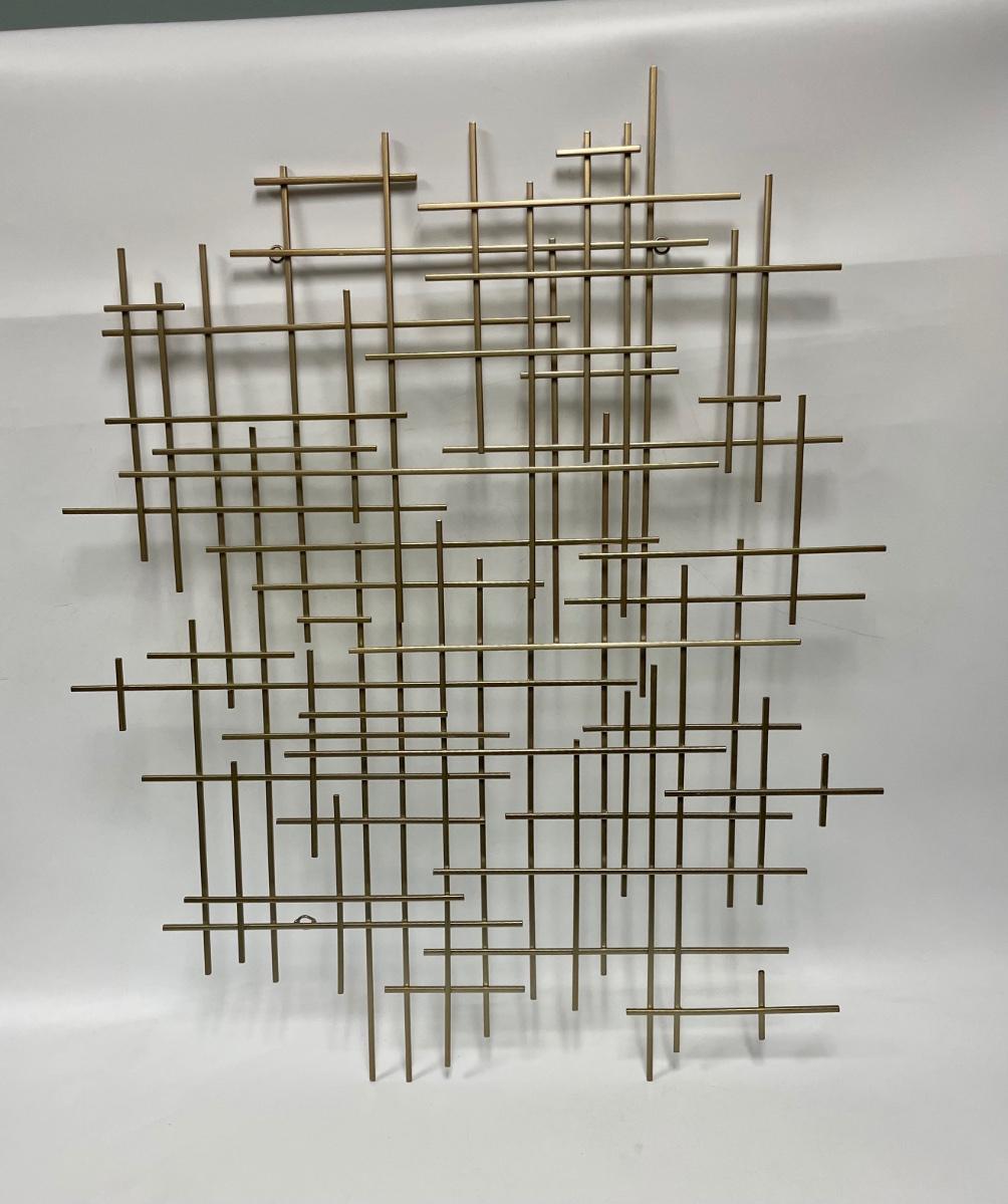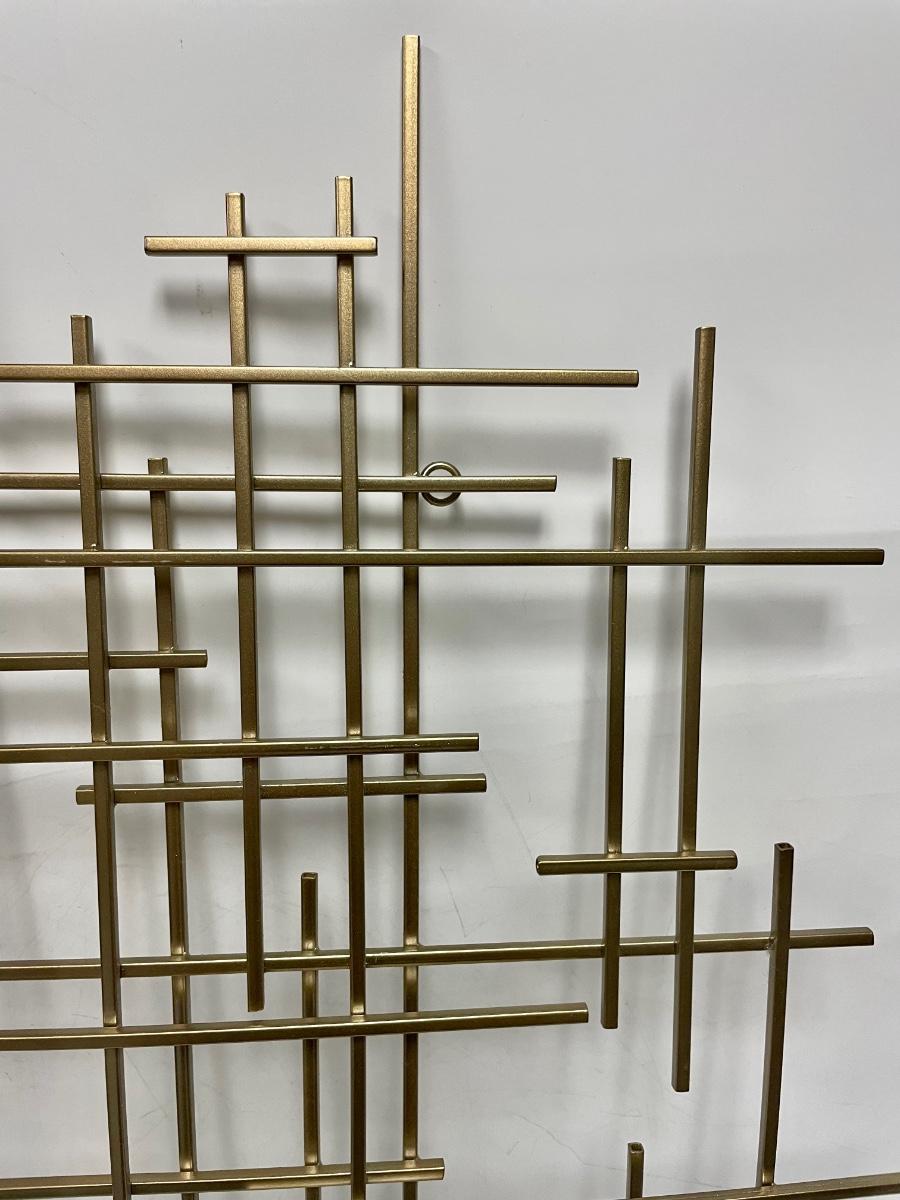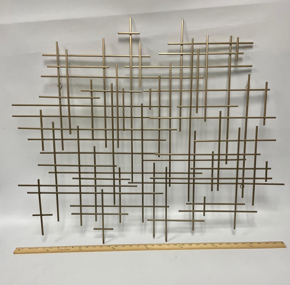 Geometric Brutalist Brass Hanging Wall Art. Approx. 36" x 30".