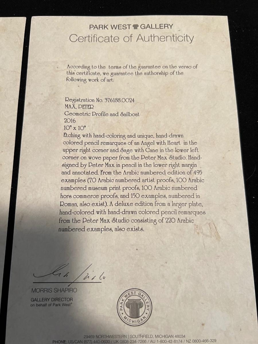 “Geometric Profile & Sailboat” By Peter Max Inc. COA & Signed (FE-RG)