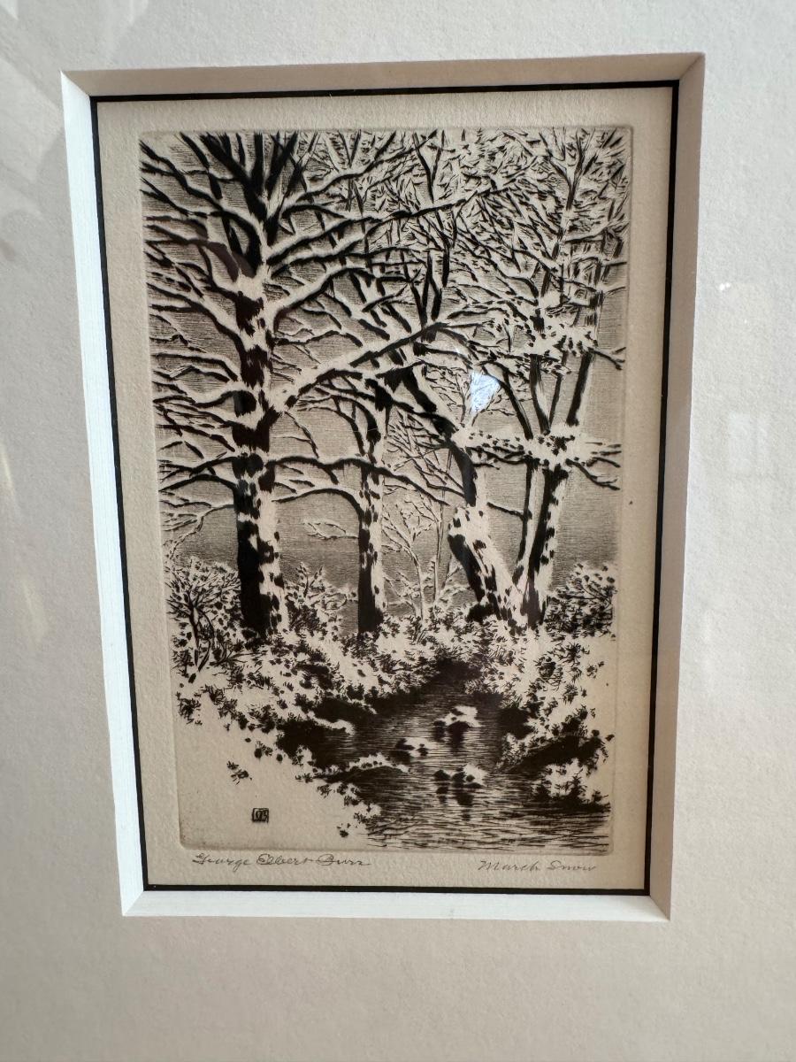 George Elbert Burr, March Snow, framed etching, Signed in pencil,