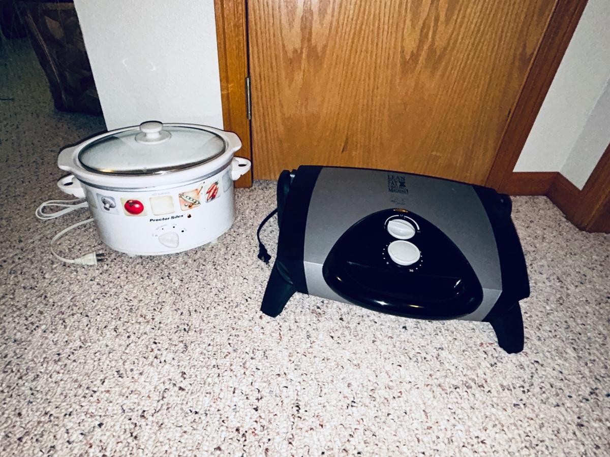GEORGE FOREMAN GRILL AND A MEDIUM CROCK POT