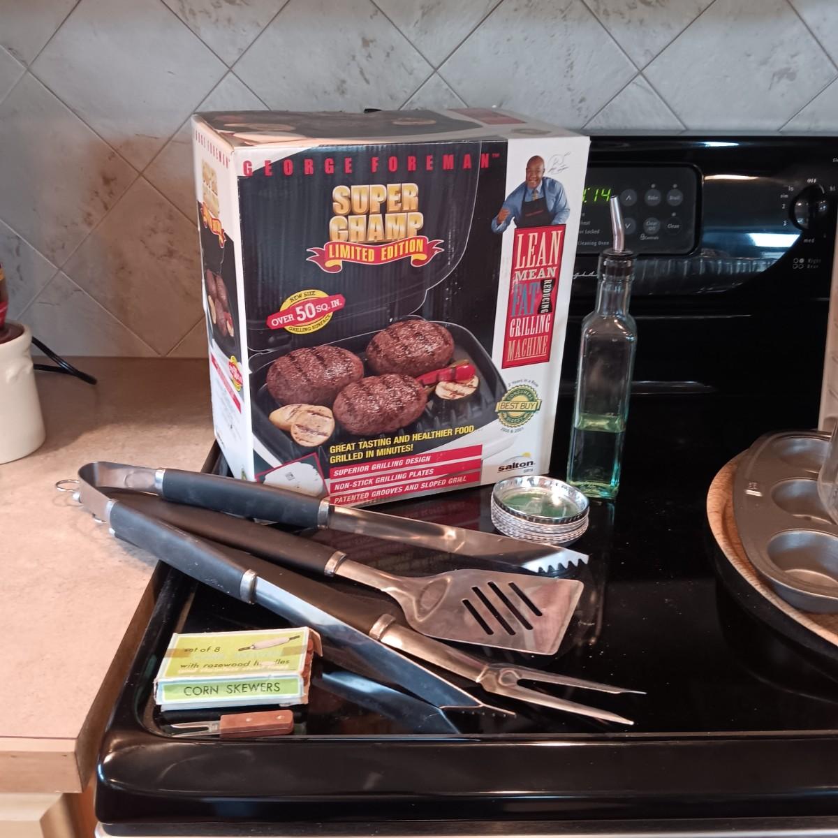 GEORGE FOREMAN GRILL, BBQ UTENSILS AND MORE