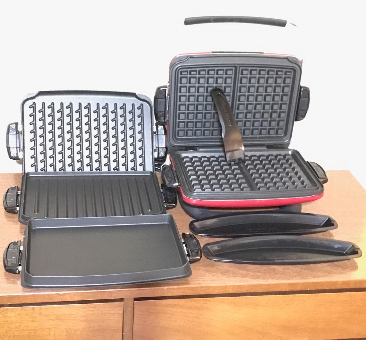 George Foreman Grill w/accessories. Includes waffle & panini irons