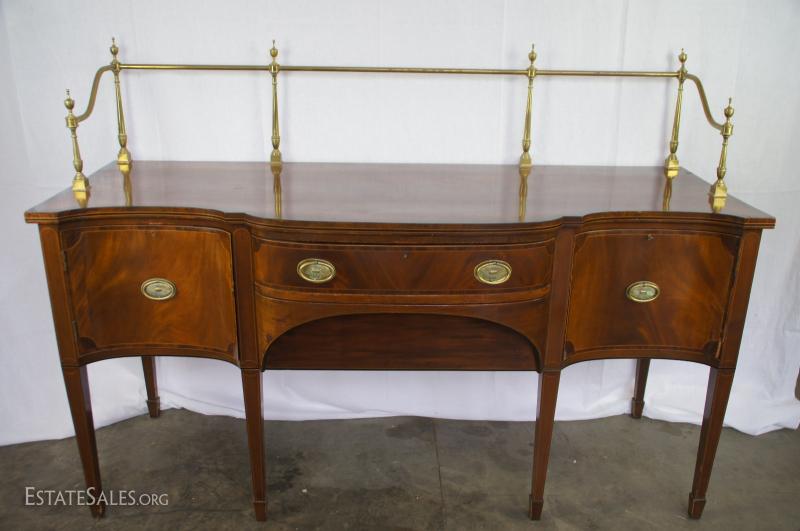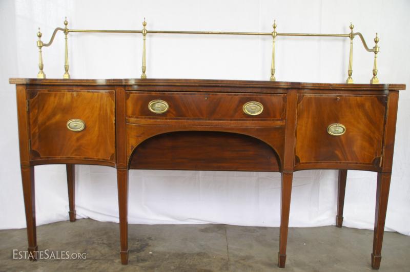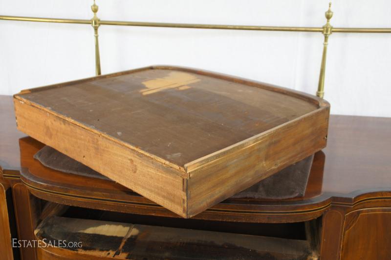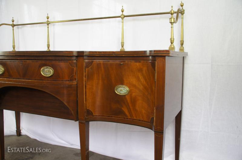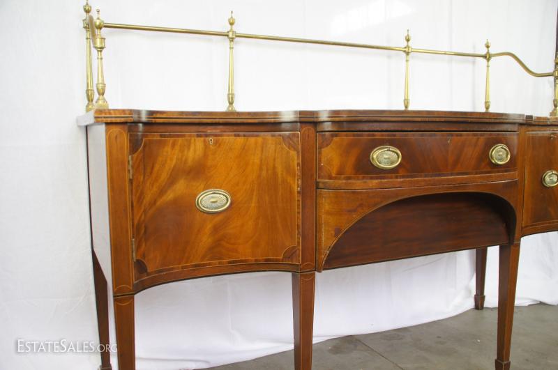 George III style brass mounted inlaid mahogany sideboard, 2nd half 19th century