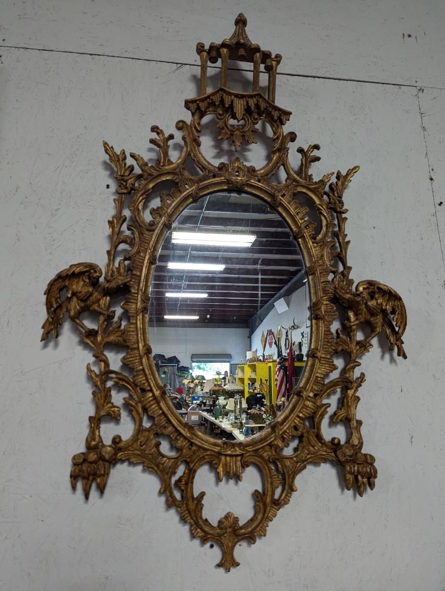 George III Style Mirror Oval Scrolled Frame Flanked By Eagles
