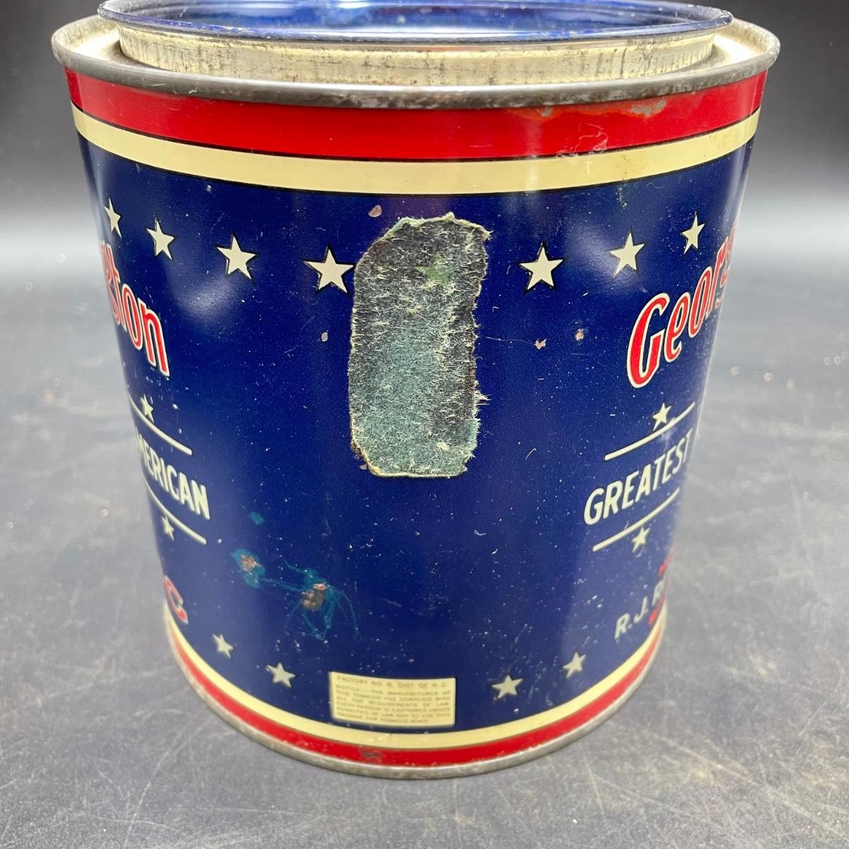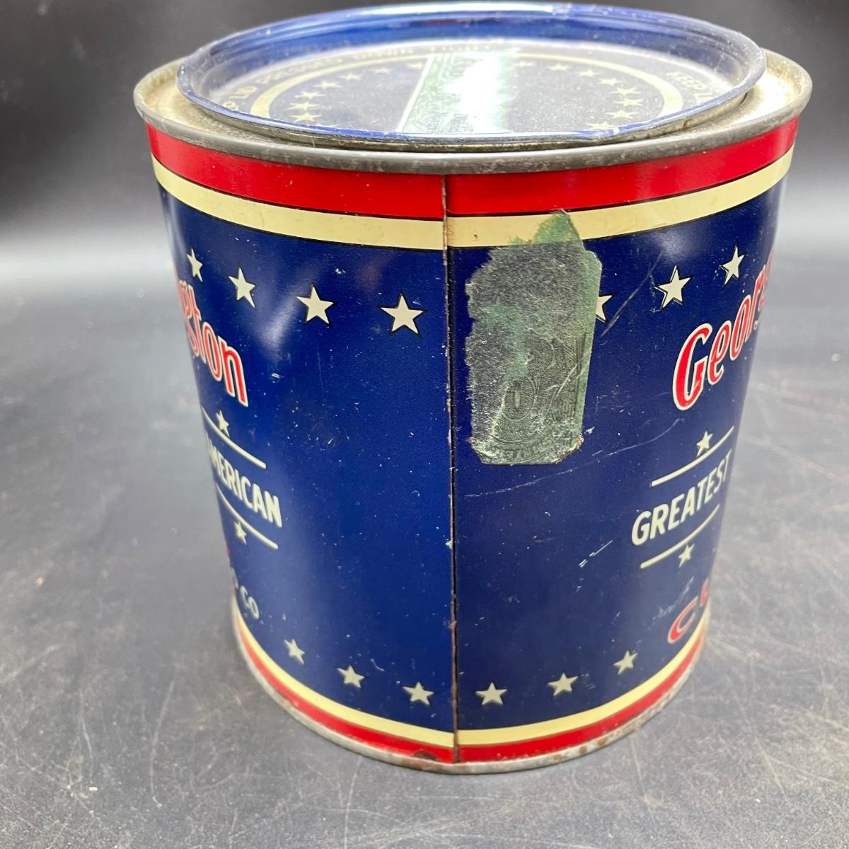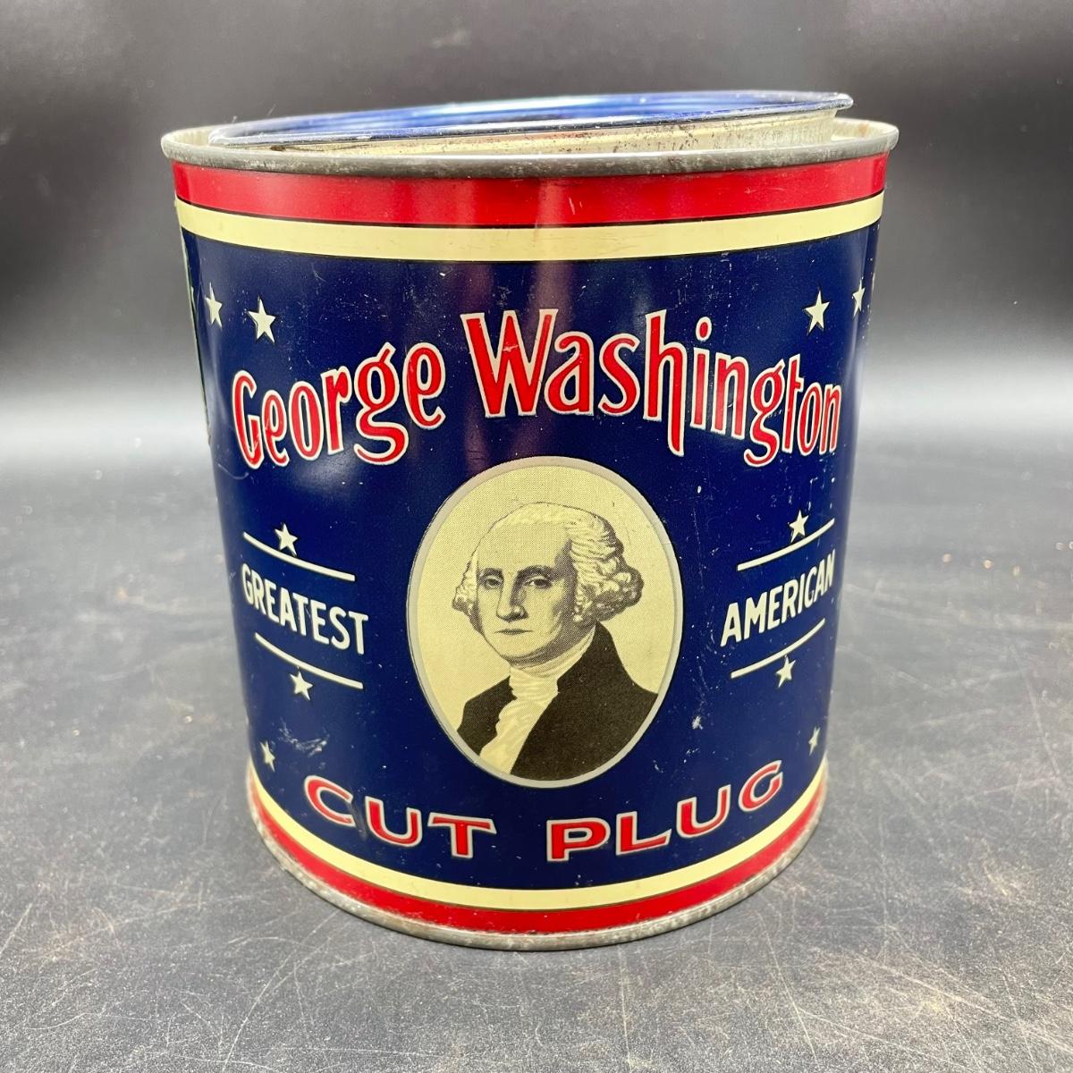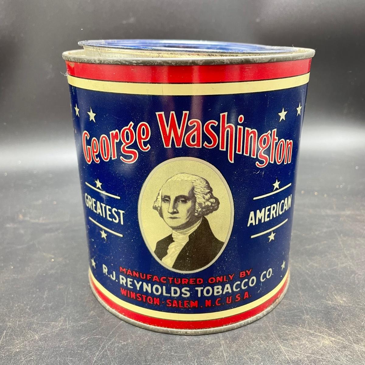 George Washington Greatest American Tobacco Tin. Tin is still bright and in great shape, it measures approximately 5.25” x 5.5”. Lid is secure, we did not attempt to open. See images. Shipping available.