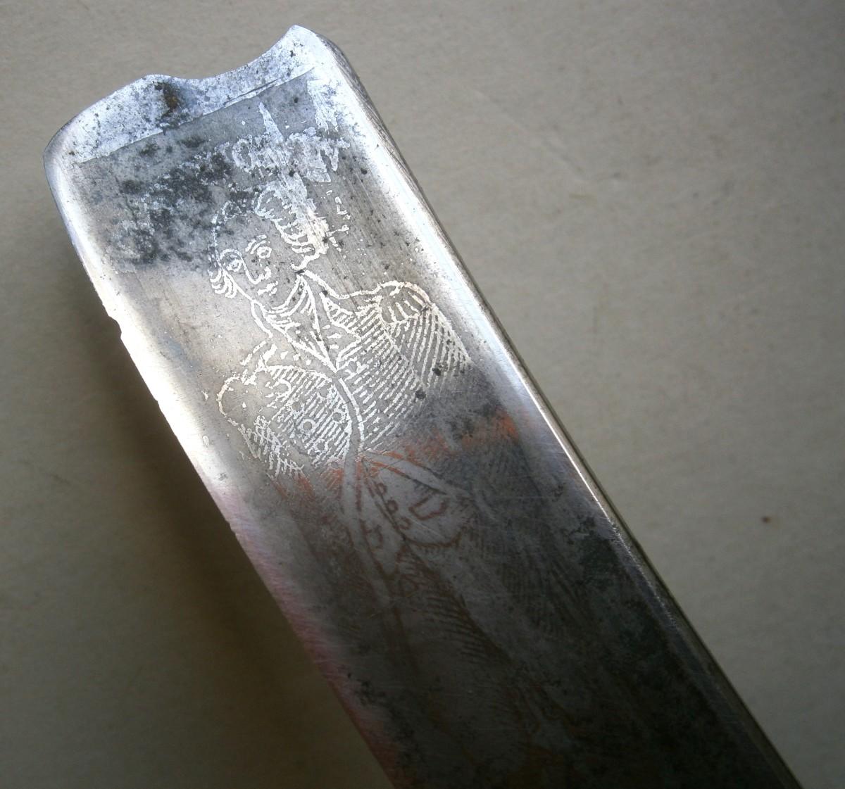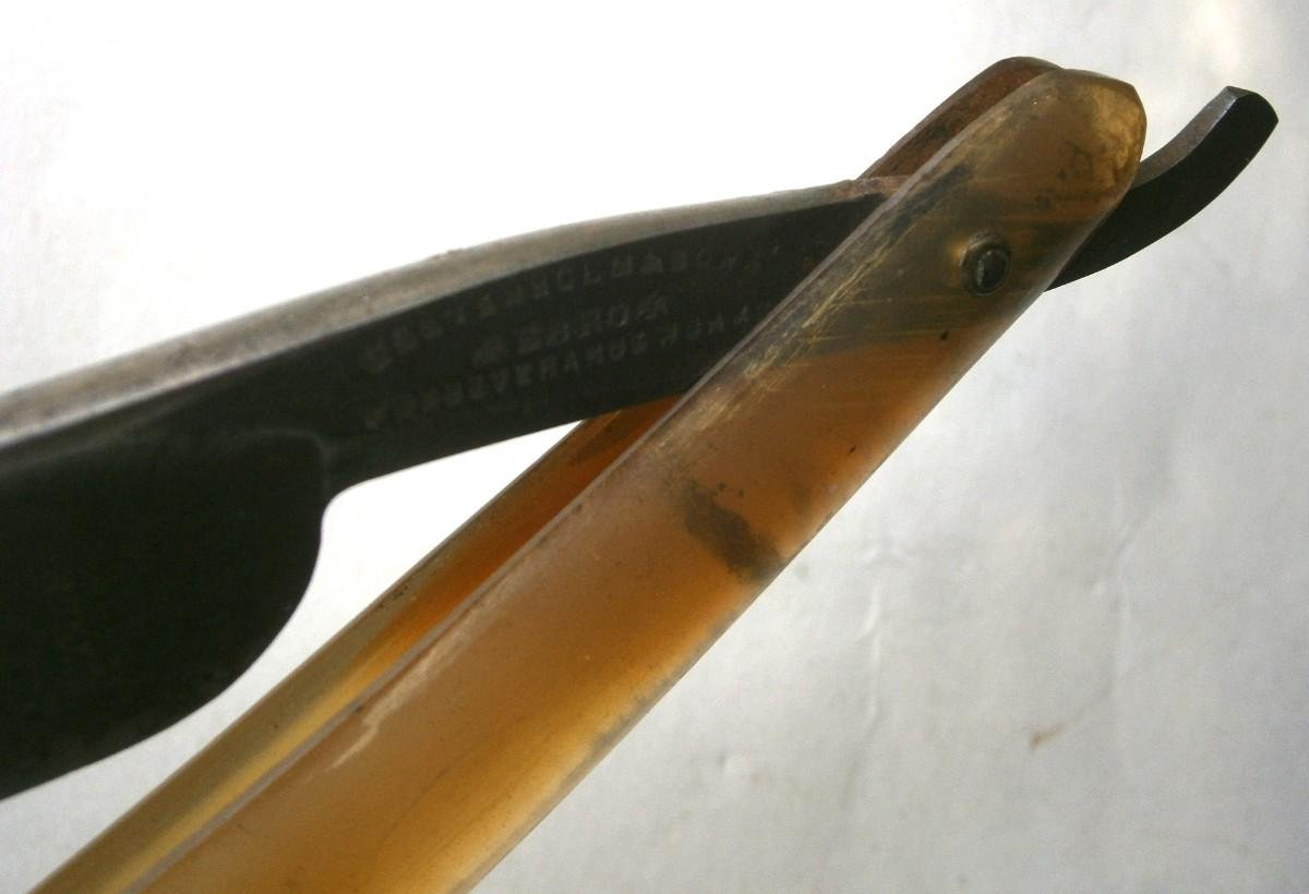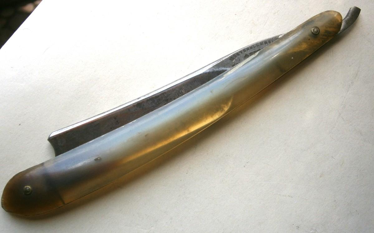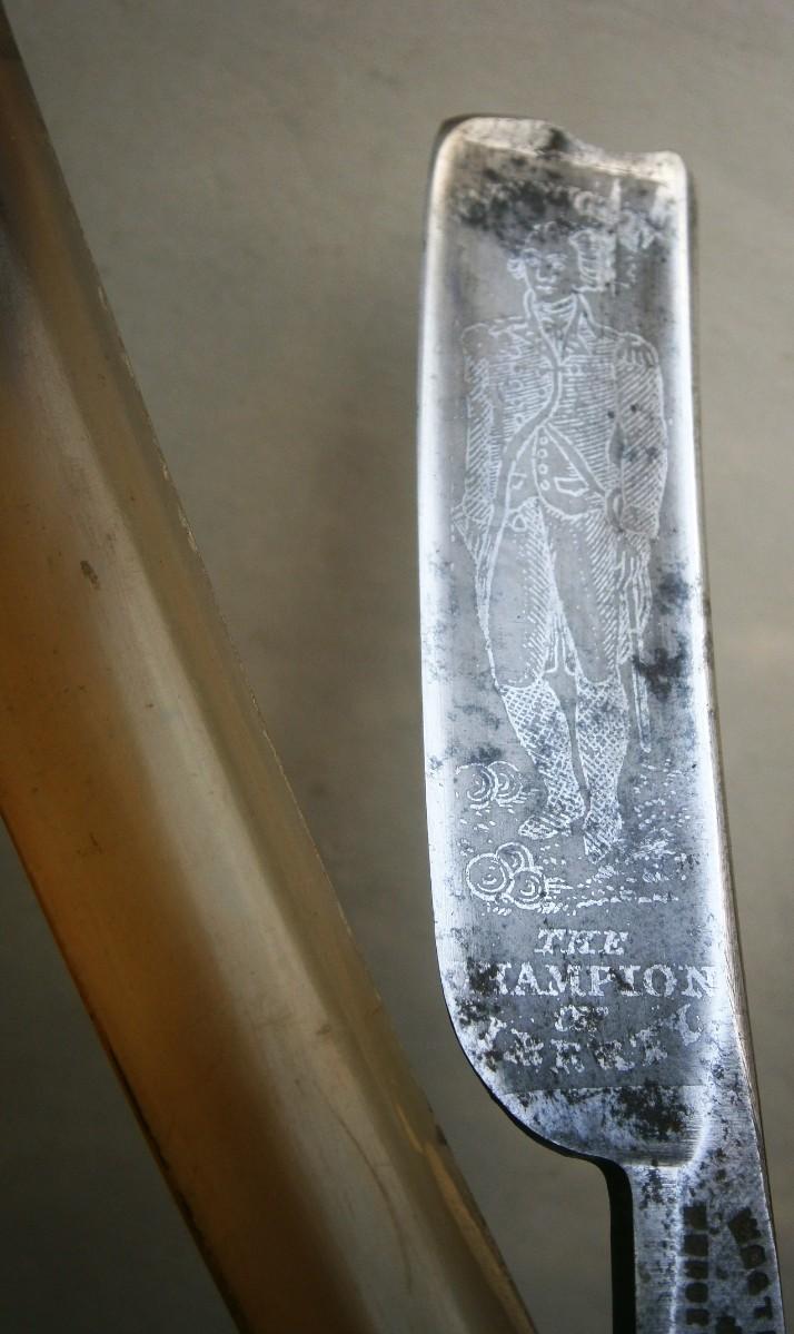 "THE CHAMPION OF LIBERTY" GEORGE WASHINGTON Straight Razor, 19th Century, horn handle, acid etched steel blade with image of George Washington, original case.