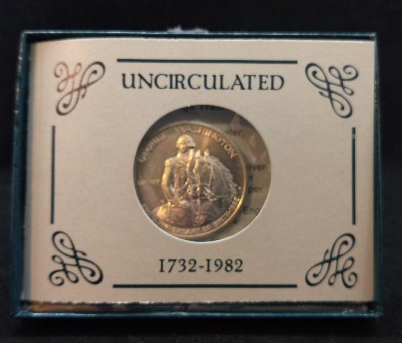George Washington Uncirculated Commemorative Silver Half Dollar In Box with COA