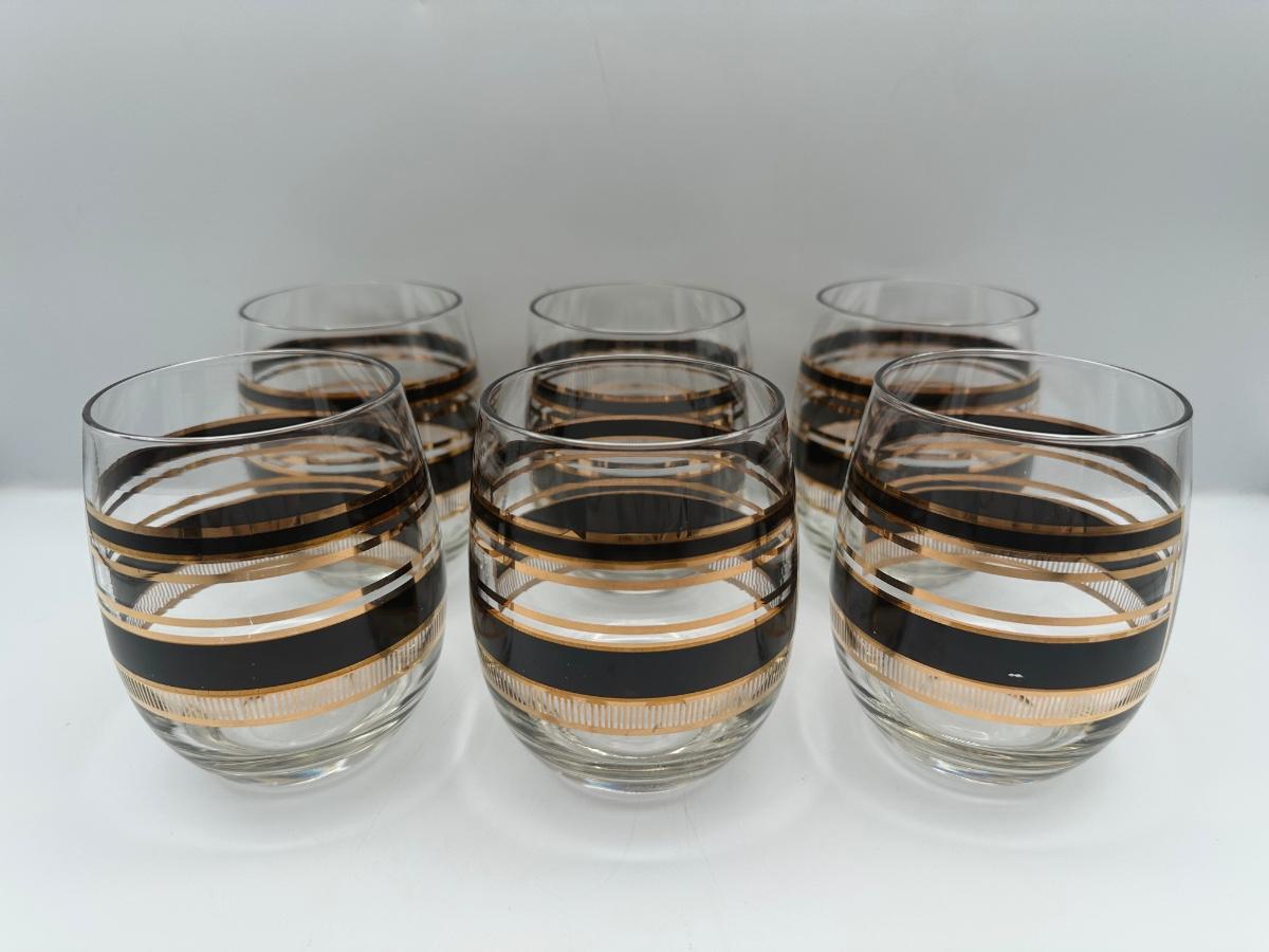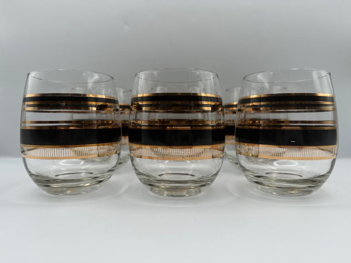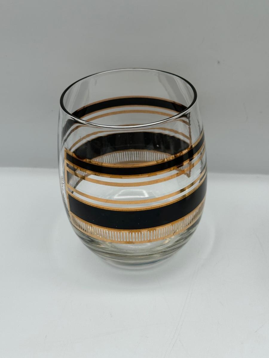 Georges Briard Mid-Century Black and 22-Karat Gold Roly Poly Glasses.