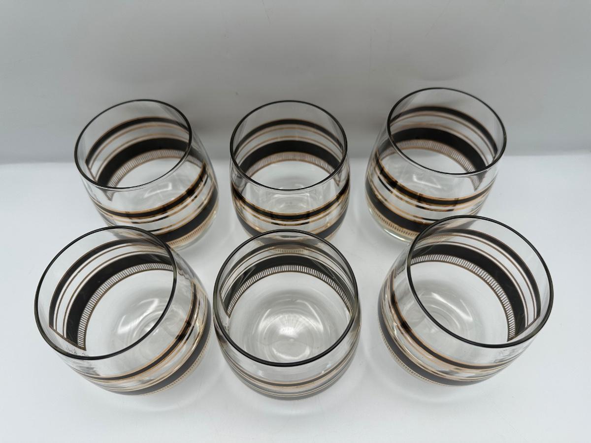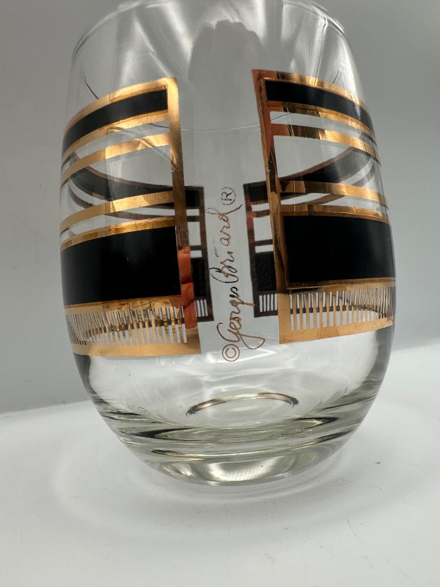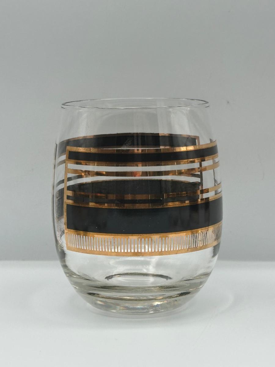 Georges Briard Mid-Century Black and 22-Karat Gold Roly Poly Glasses.