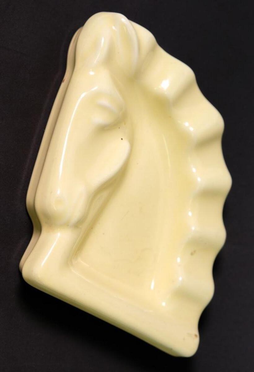 Georgia Tech School of Ceramic Engineering Georgia clay horse head ashtray. Inscribed on the side 'Randolph' and stamped School of Ceramic Engineering/Georgia Institute of Technology/Atlanta, Georgia/MADE FROM GEORGIA GLAYS. Approx. 6 x 5 in.