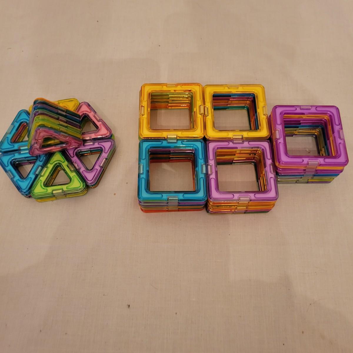 An array of GeoSmart building magnetic squares and triangles. Over 60 pieces included in the lot. Shipping available
