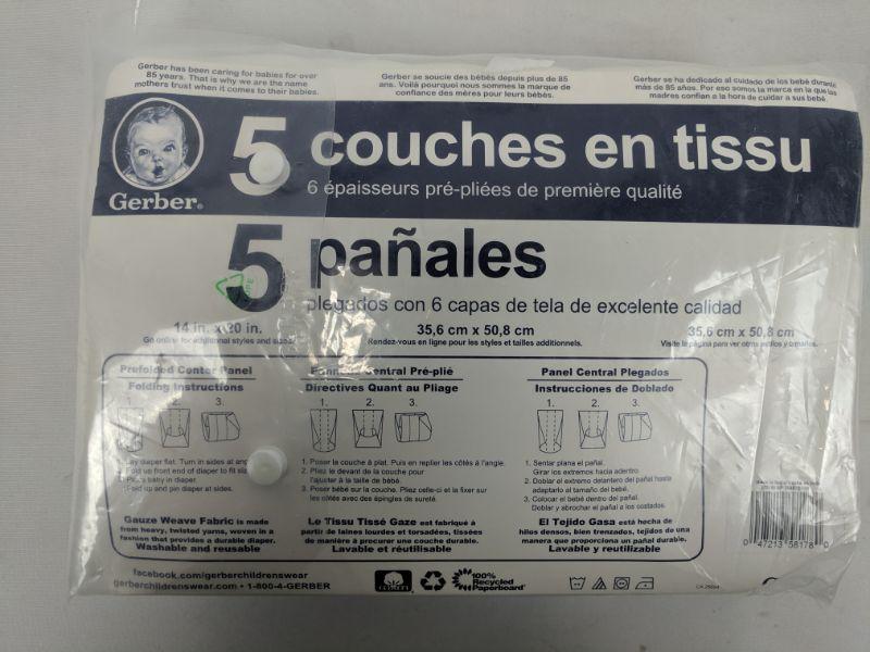 Gerber 5 Cloth Diapers, Set of 2 - New