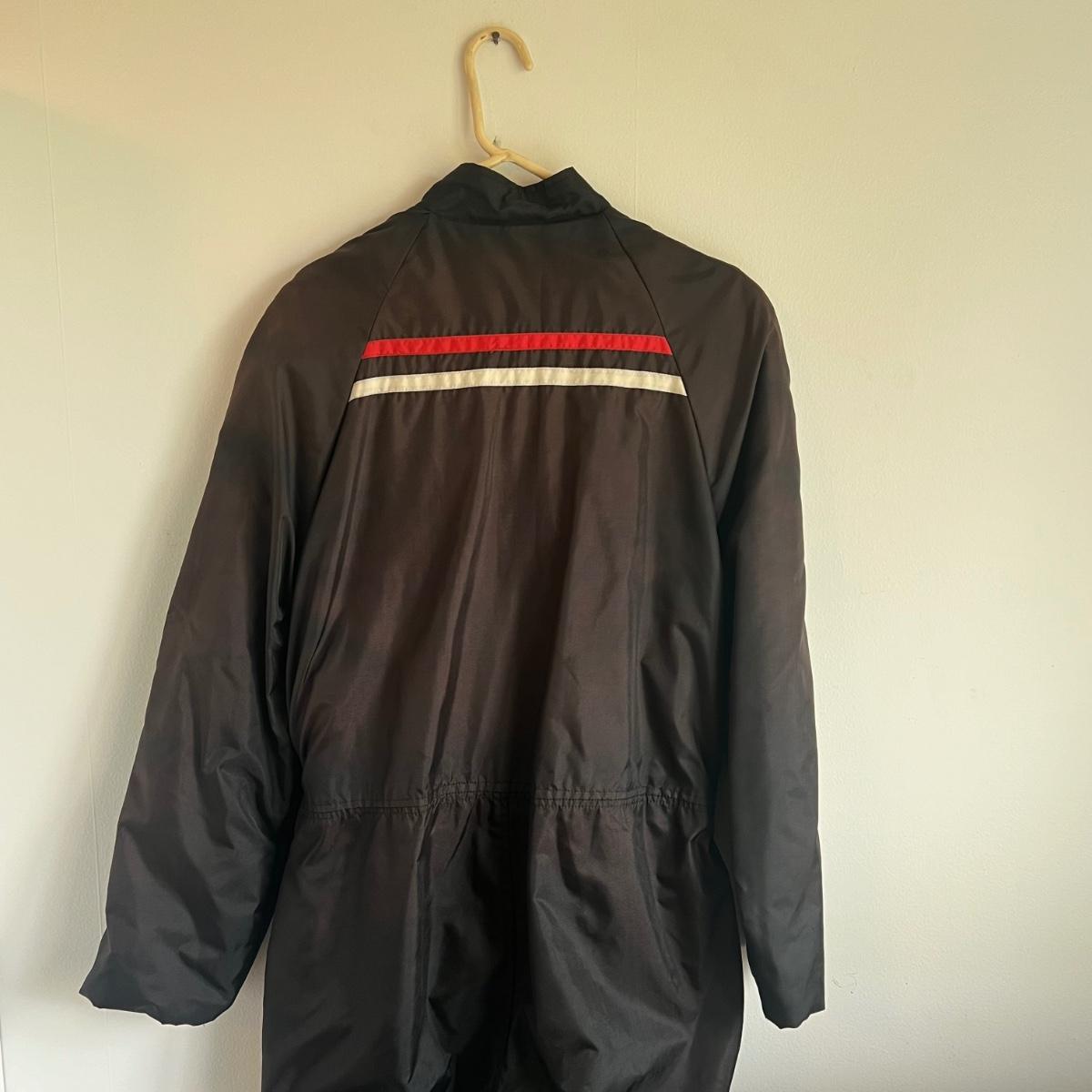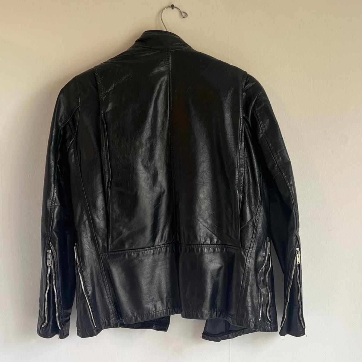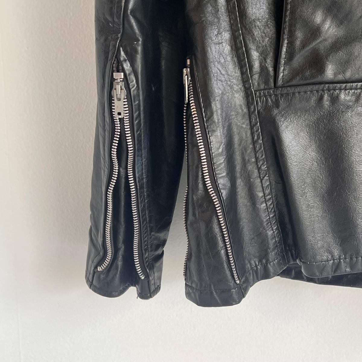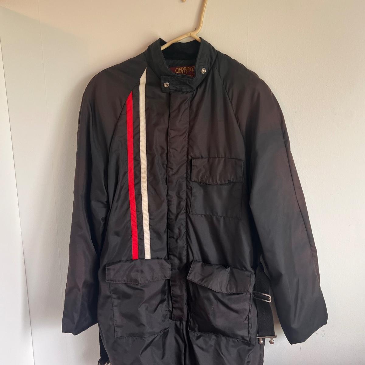 This lot includes a Gerbing’s Electra Products heated motorcycle riding jumpsuit, made in Washington, USA. The tag reads a size small. Plus a leather jacket from The Leather Shop with a small “I love USA” pin. The tag reads size 10. Shipping available.