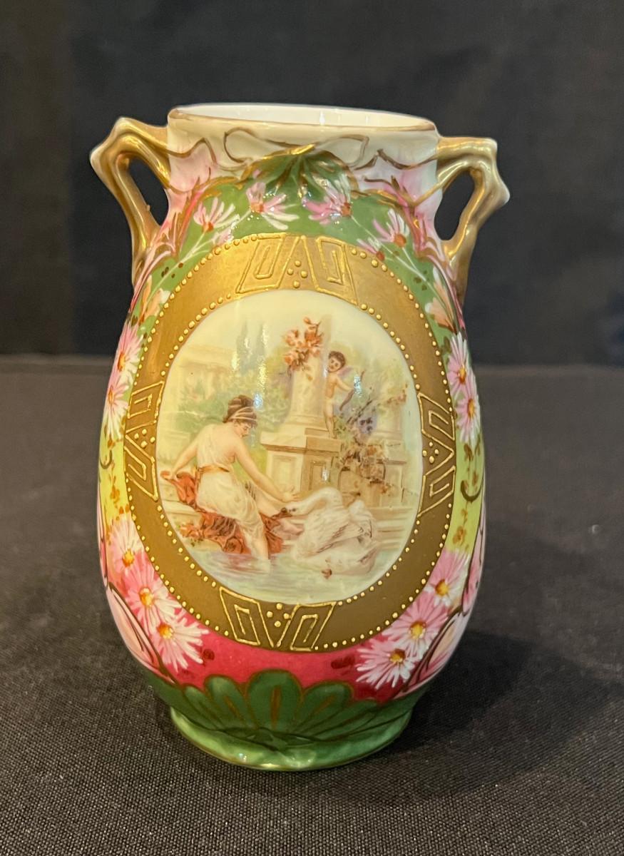Germain R S Prussia Vase, Woman & Swan Circa 1930's