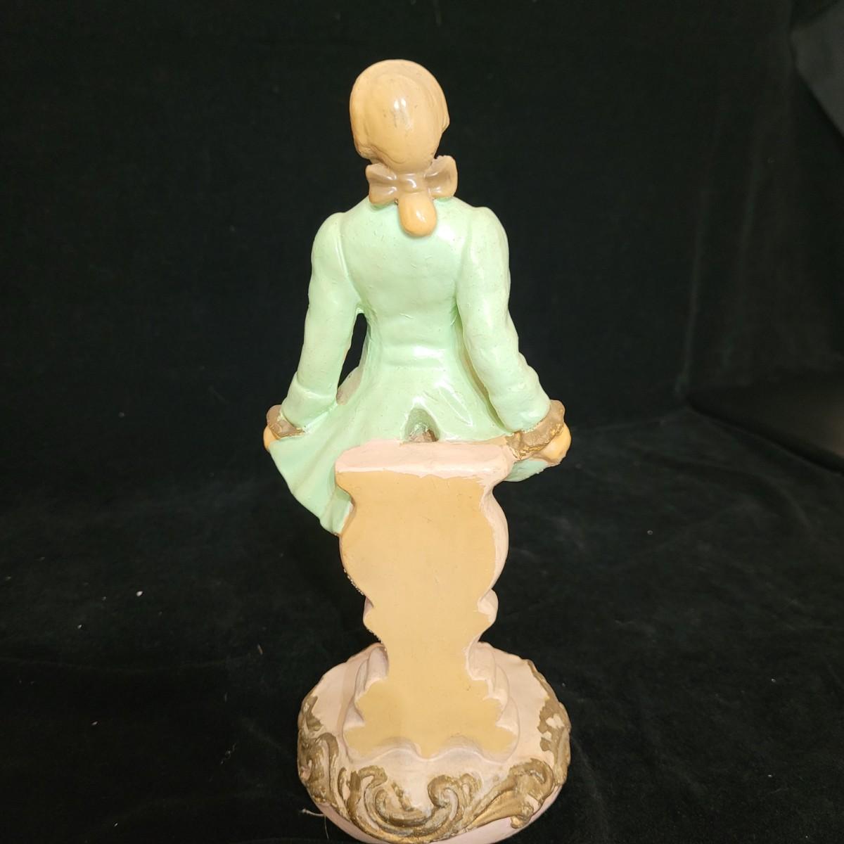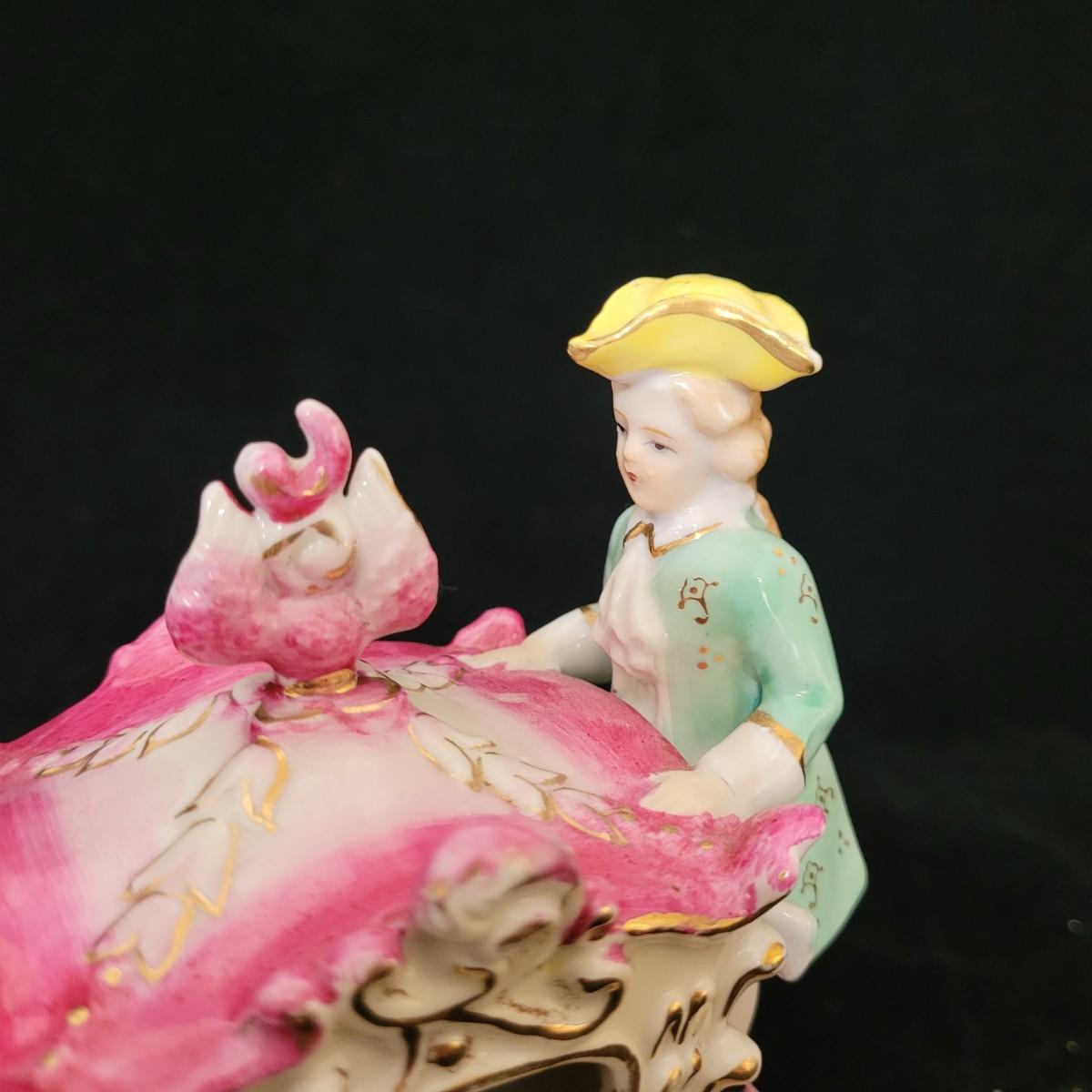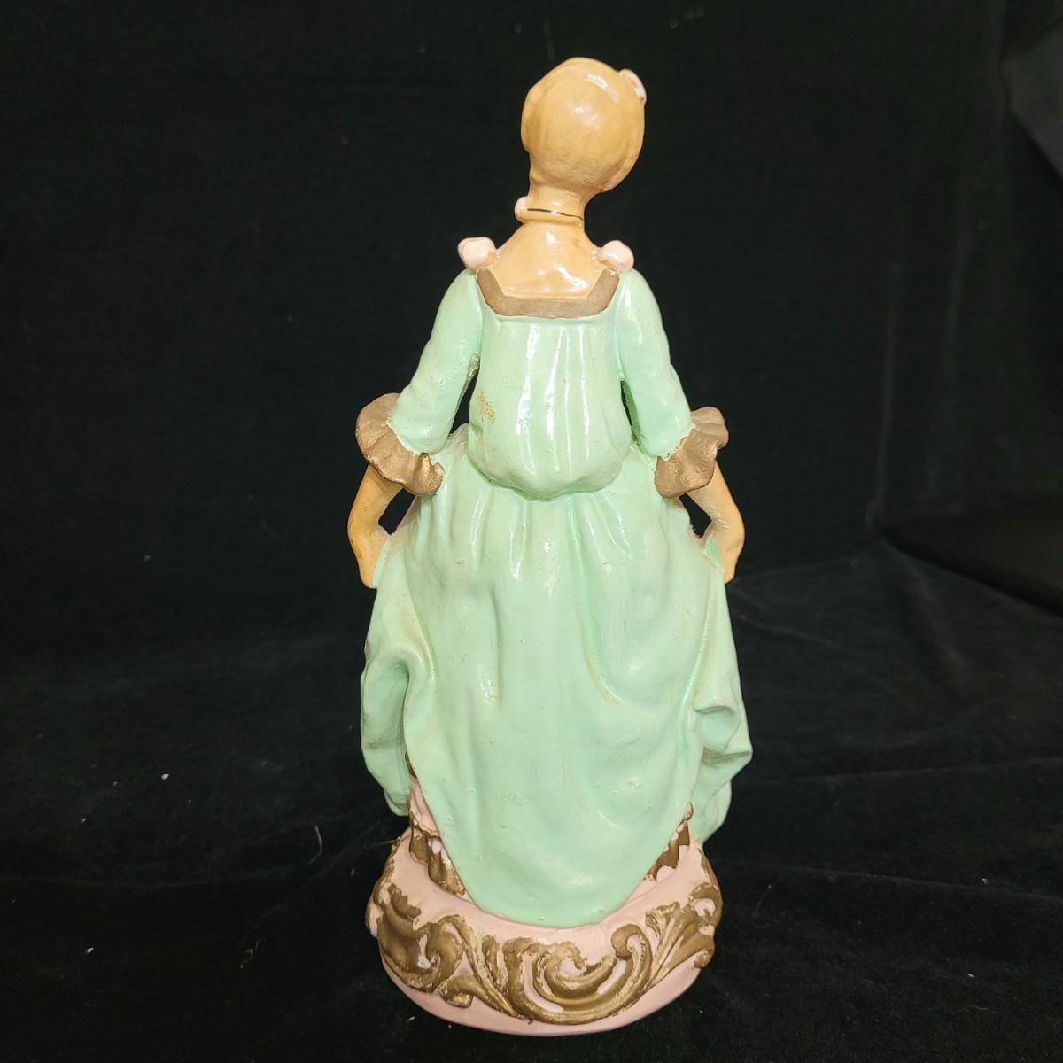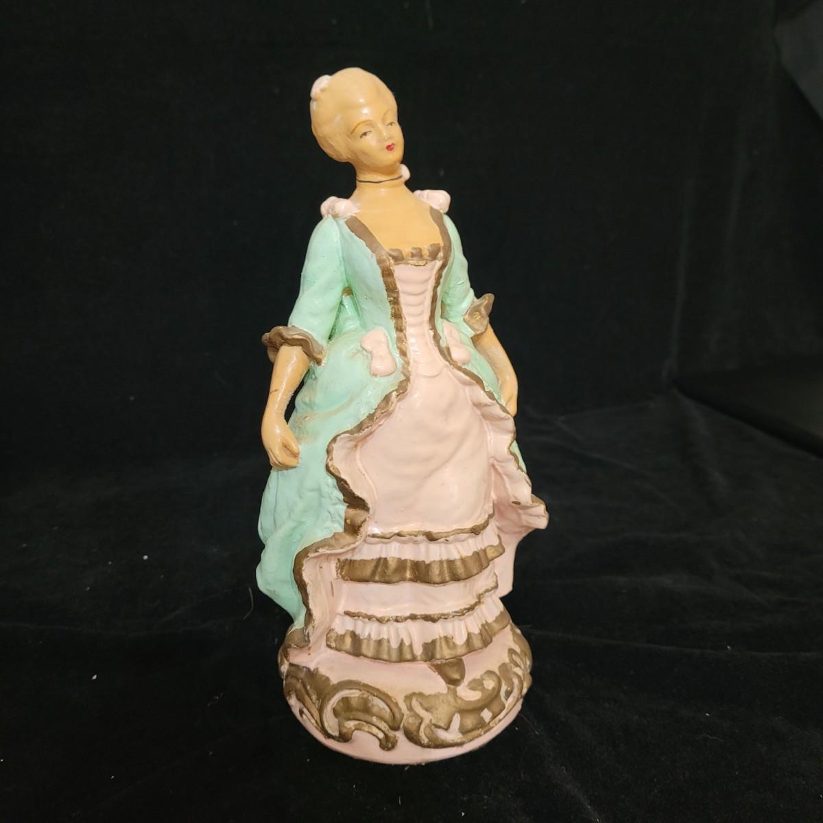 Collection of Baroque style figurines, including two children, an adult man and woman, and a horse drawn carriage holding a young woman. Items are in good condition with normal accumulation of dust that can be easily cleaned. No chipping noted when inspected, but fading of paint throughout (see photos). Carriage piece measures approximately 12"L x5"W x7"H. Shipping available.