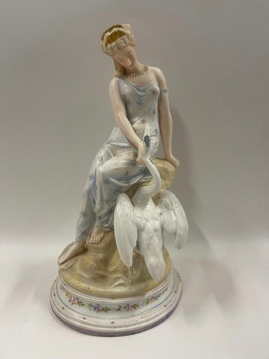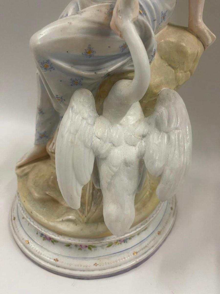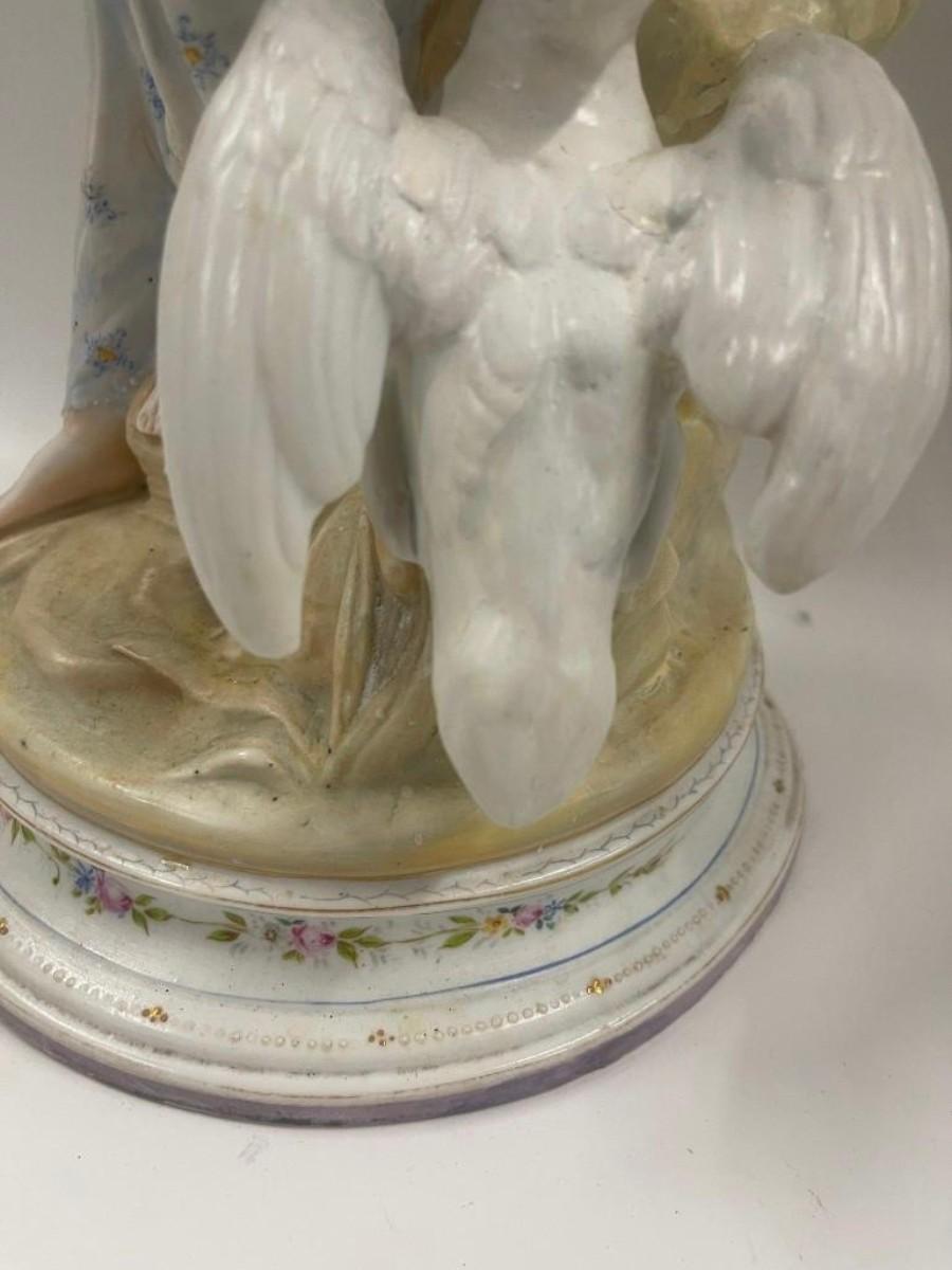 German Bisque Dresden Figurine Lady Swan Statue Porcelain Ceramic Goose Bird