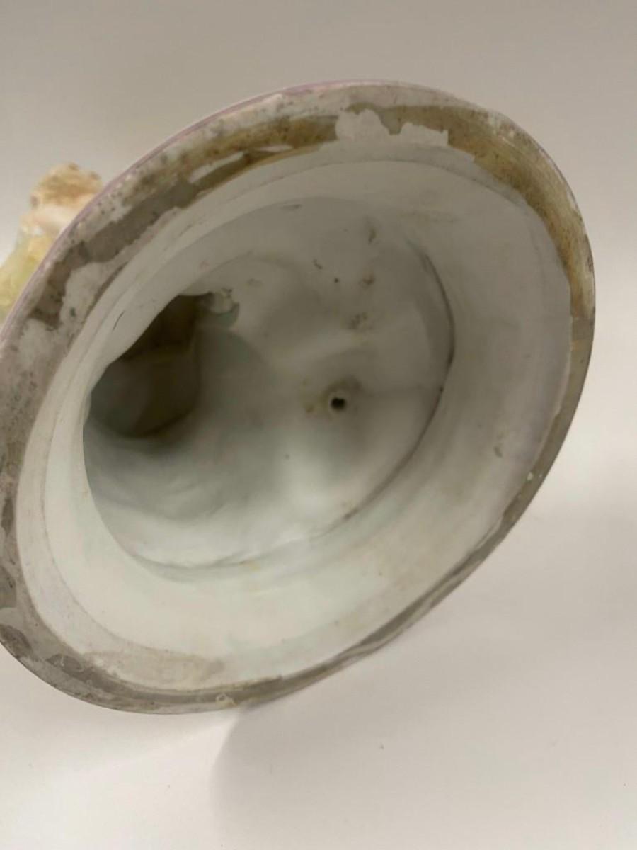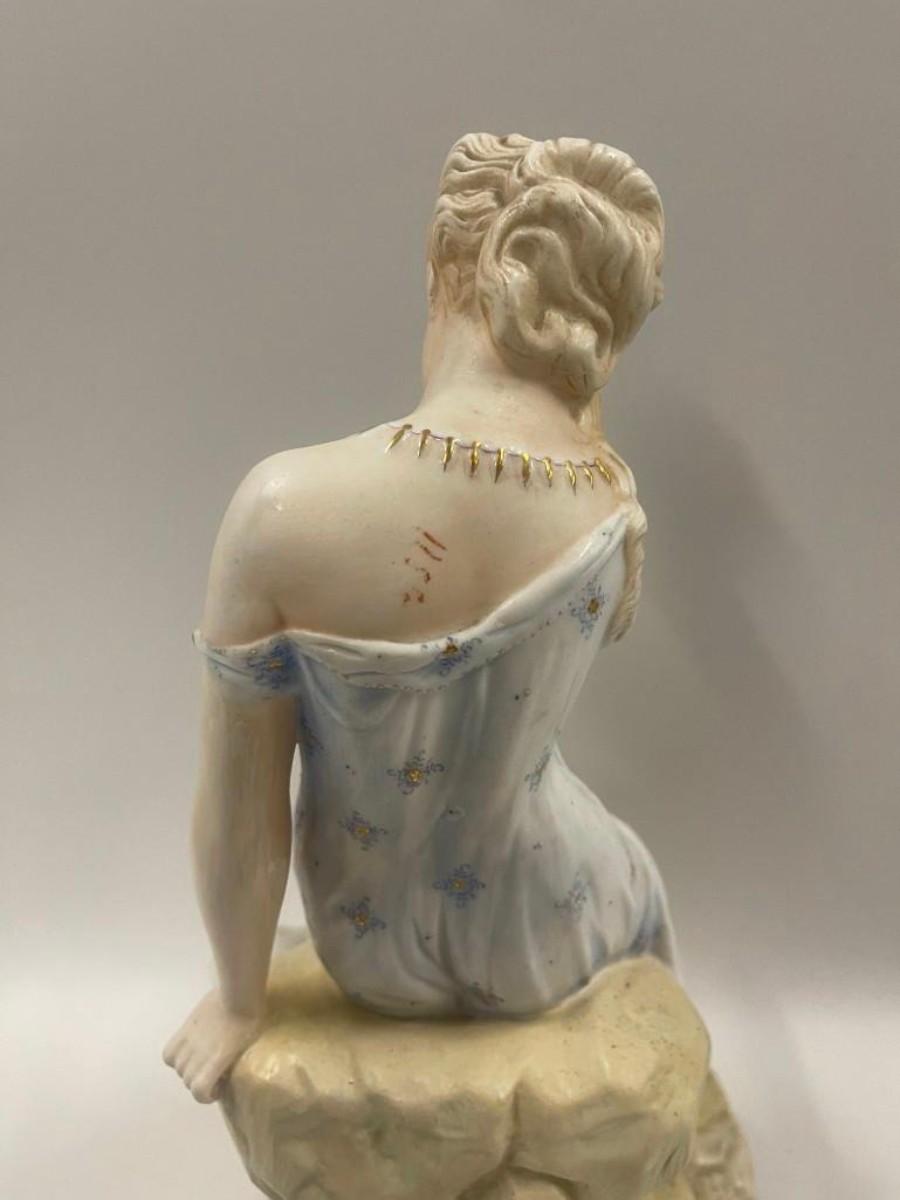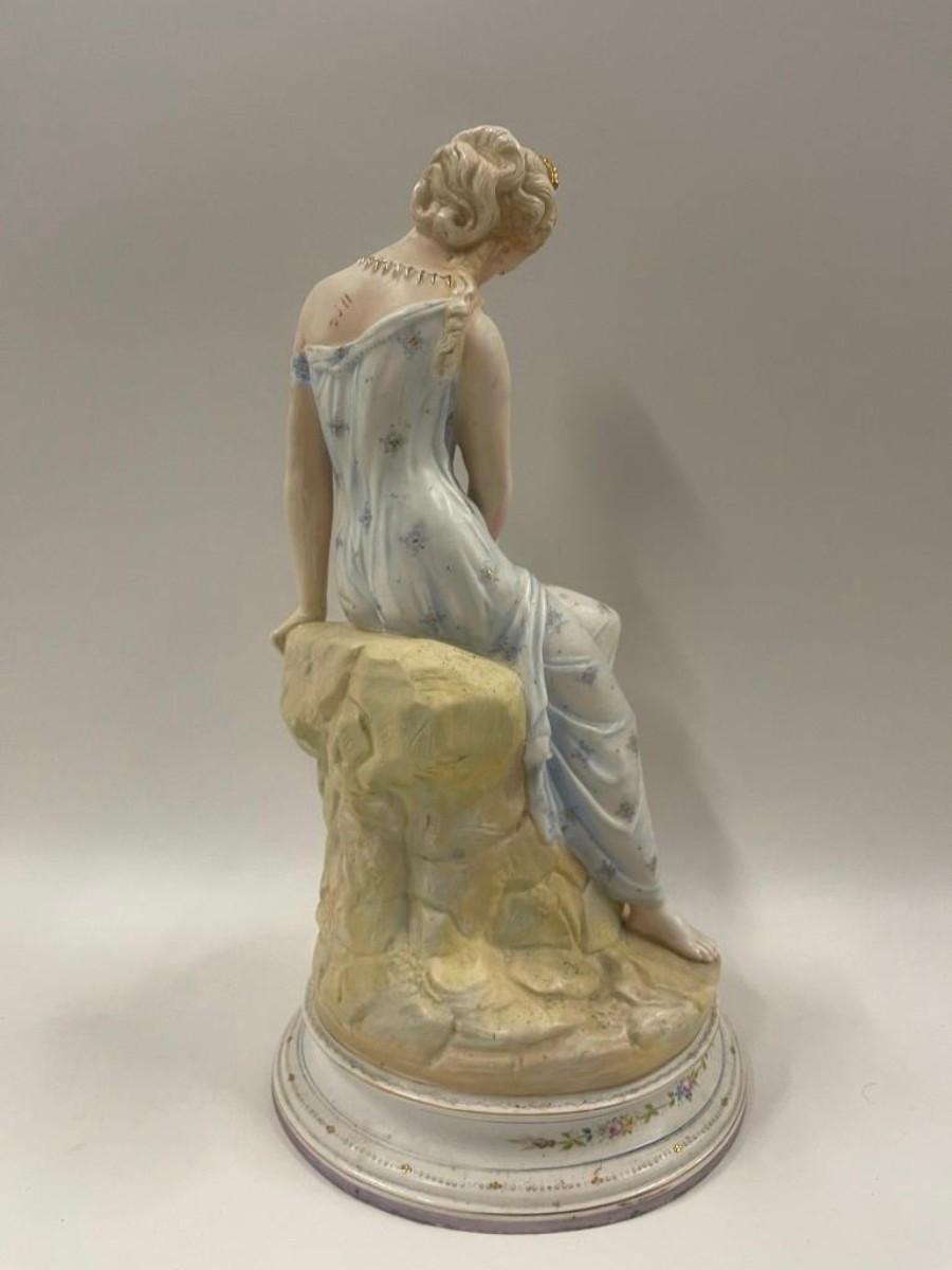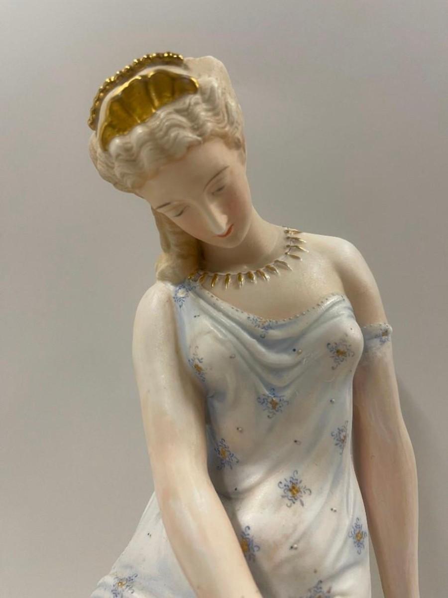 German Bisque Dresden Figurine Lady Swan Statue Porcelain Ceramic Goose Bird