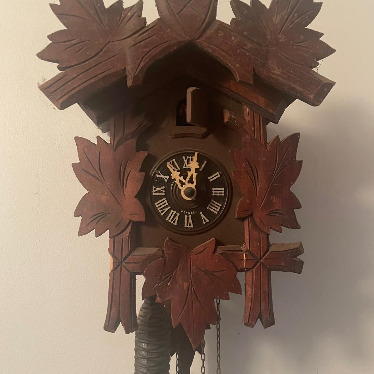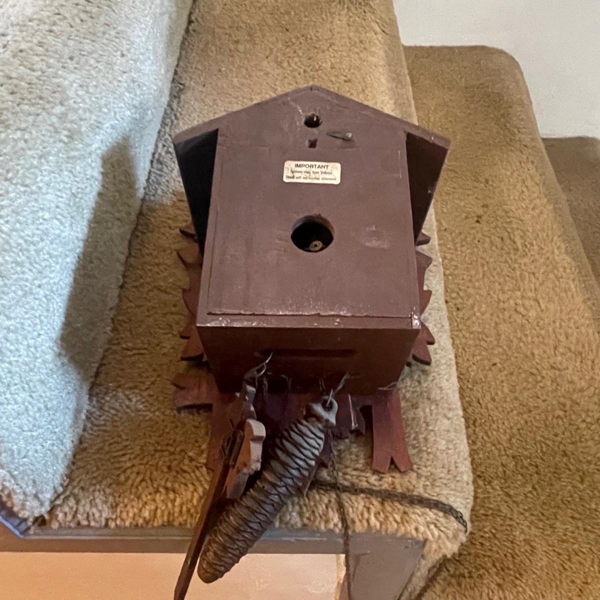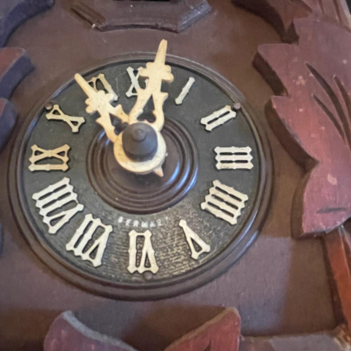 This cuckoo clock has Germany marked on the clock face. All parts appear to be present but it is not currently running and may need some work to get it going.