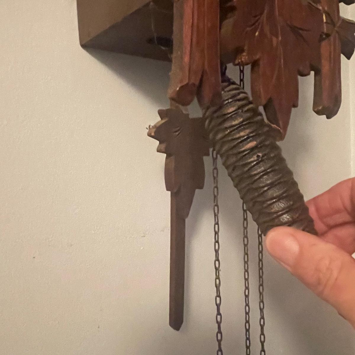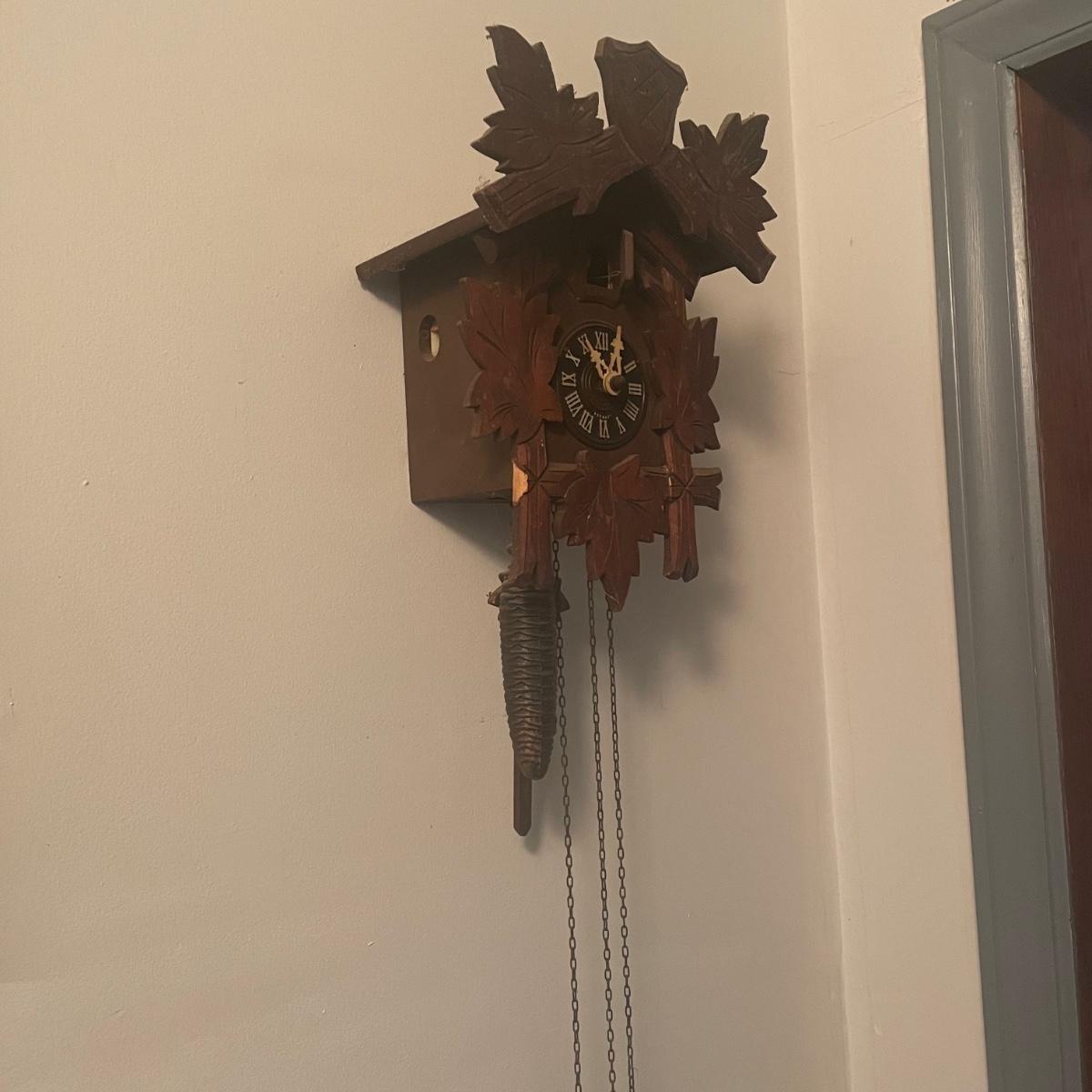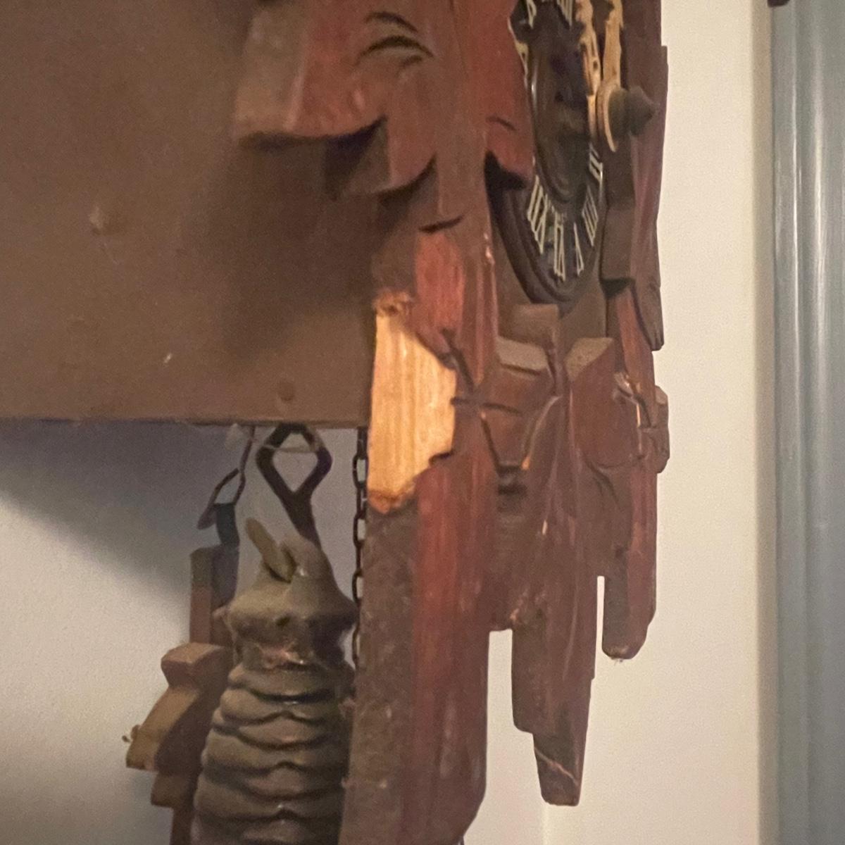 This cuckoo clock has Germany marked on the clock face. All parts appear to be present but it is not currently running and may need some work to get it going.