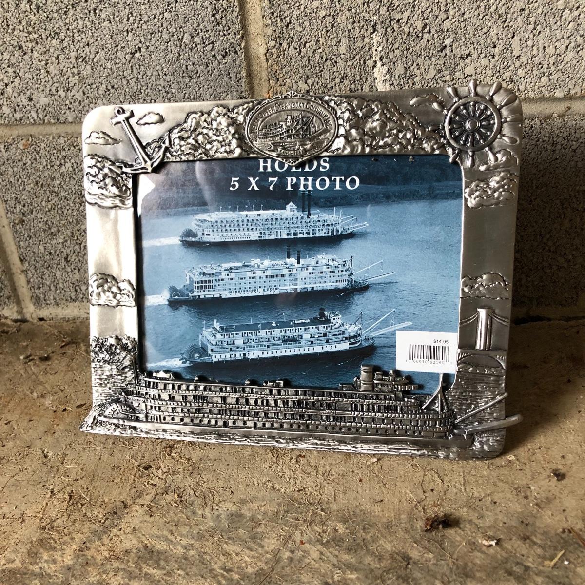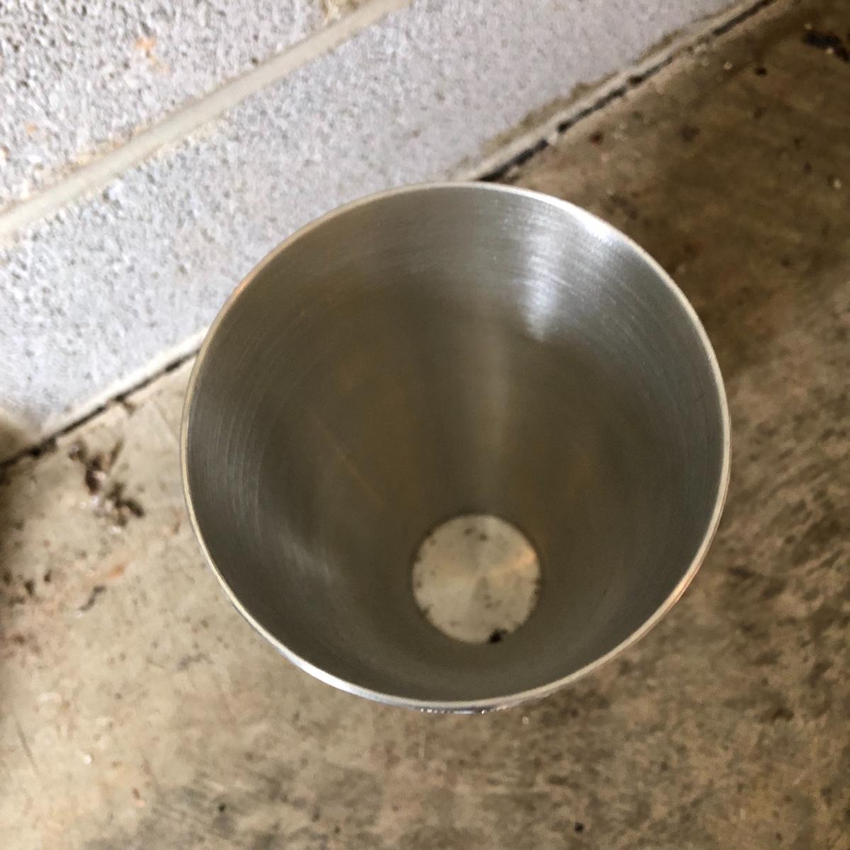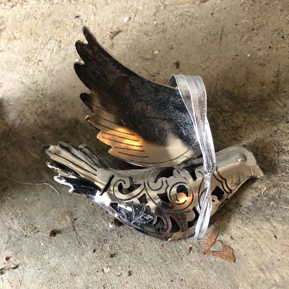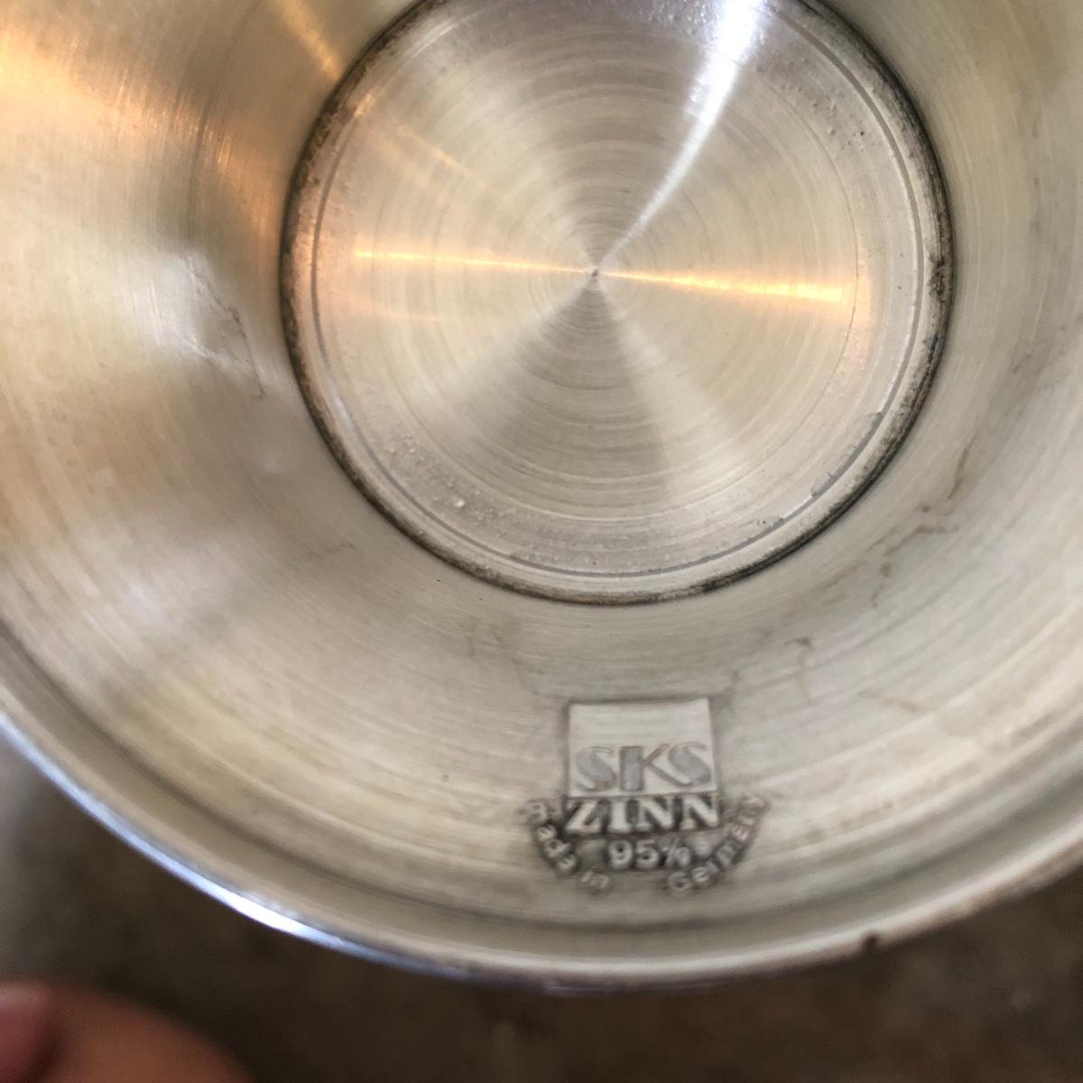 Lot includes a metal German cup, picture frame, shot glass, pineapple, Norwegian ornament and a bird ornament. Cup measures 3.5”D x 9” tall.