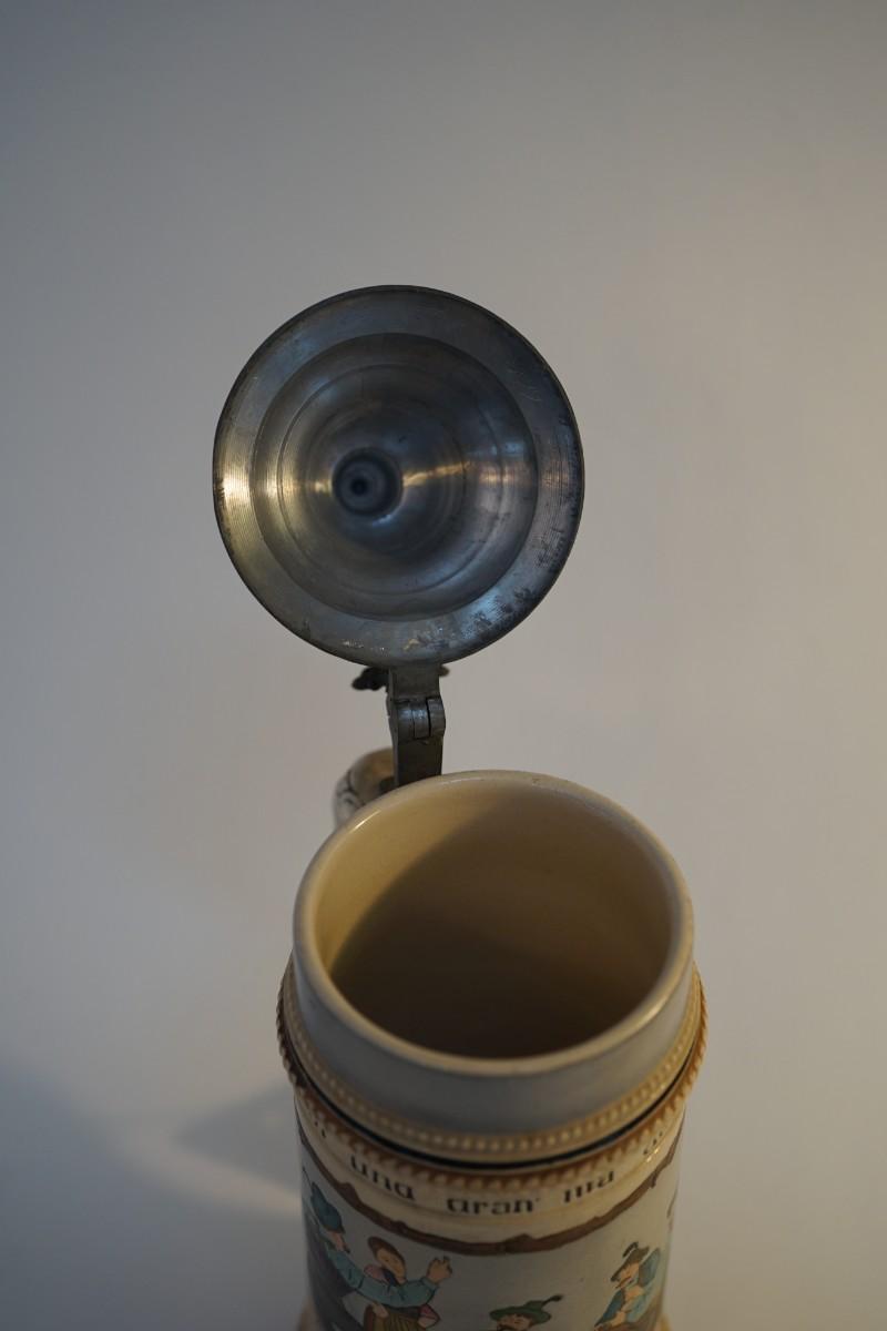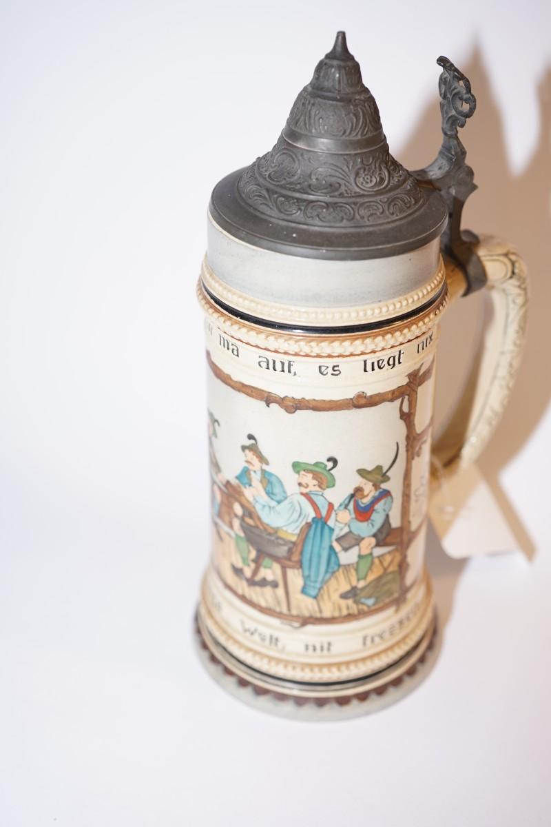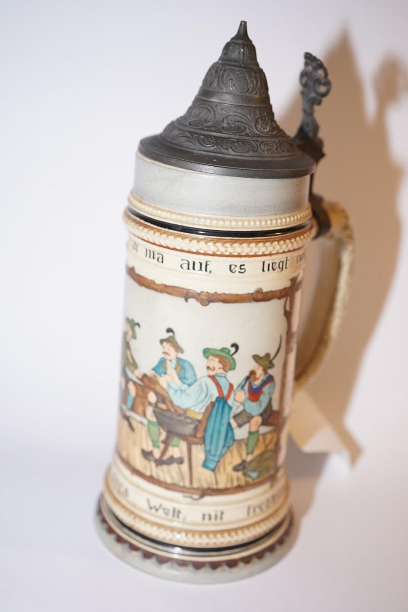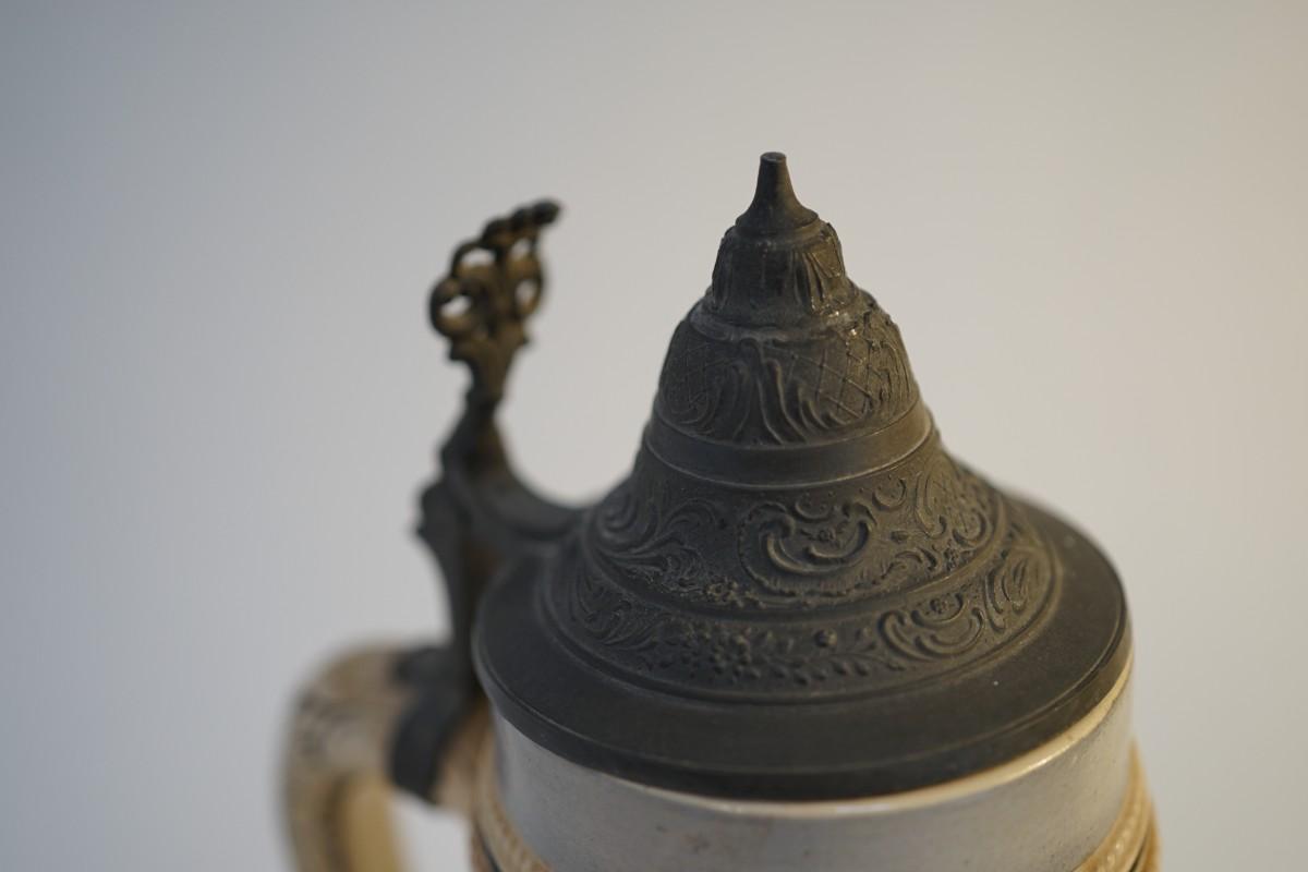 German etched stein with pewter lid