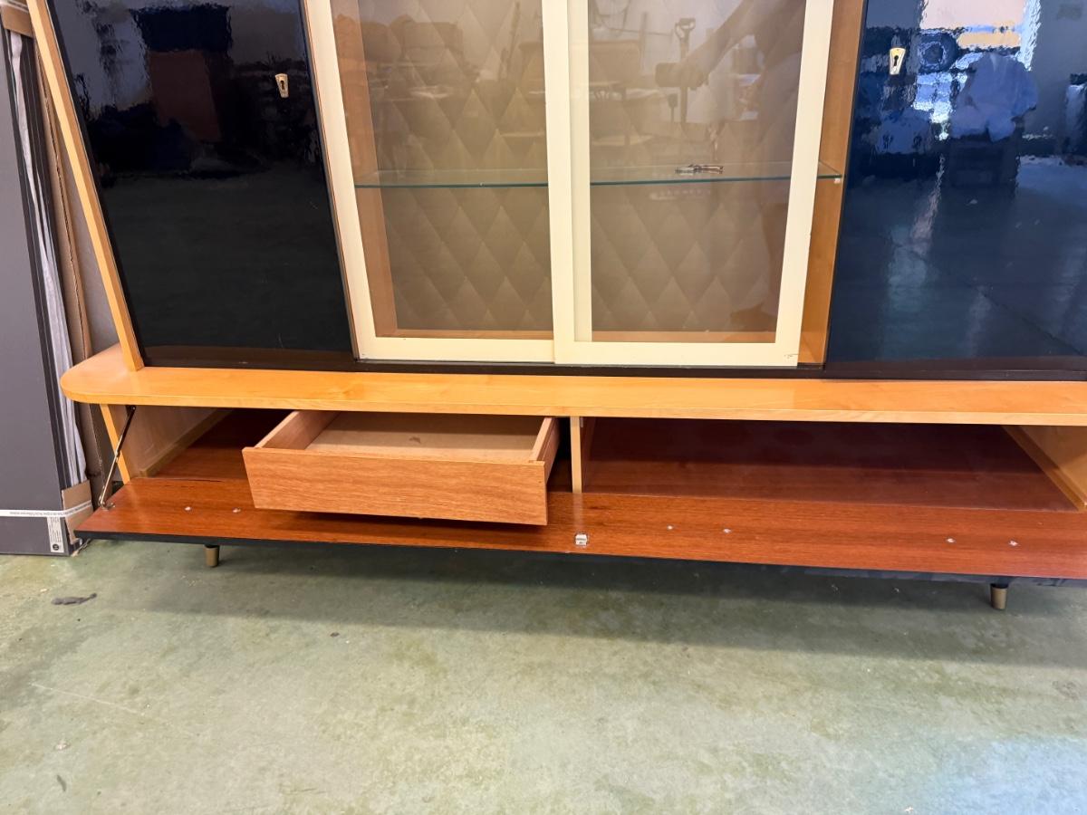 Very Large and Heavy and only has one shelf in the middle section but room for 2