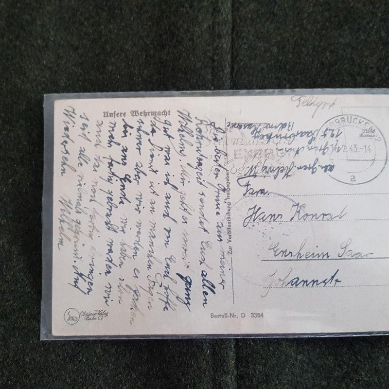 This auction lot is for a German Nazi WW2 Artillery Unit Photo Postcard. This card is one sent from the front to the home folk from an active soldier. It is postmarked Saarbrucken and dated February 16, 1943. The card is in good condition for its age and service.