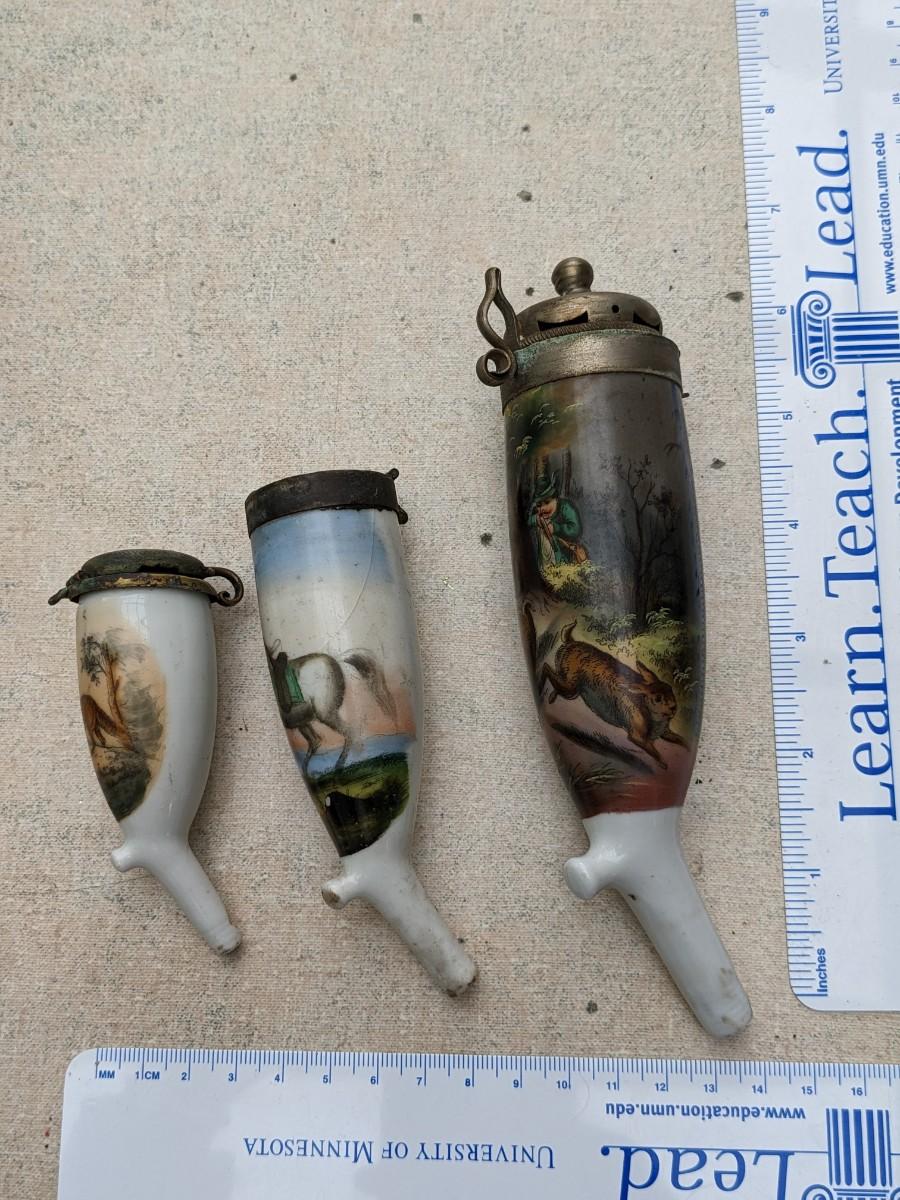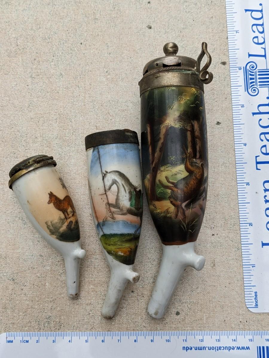 German Porcelain Hunting Scene Furnace Pipes Pieces