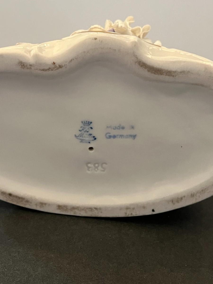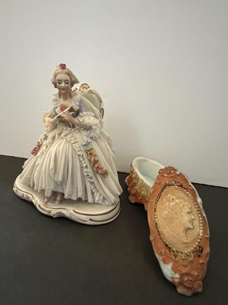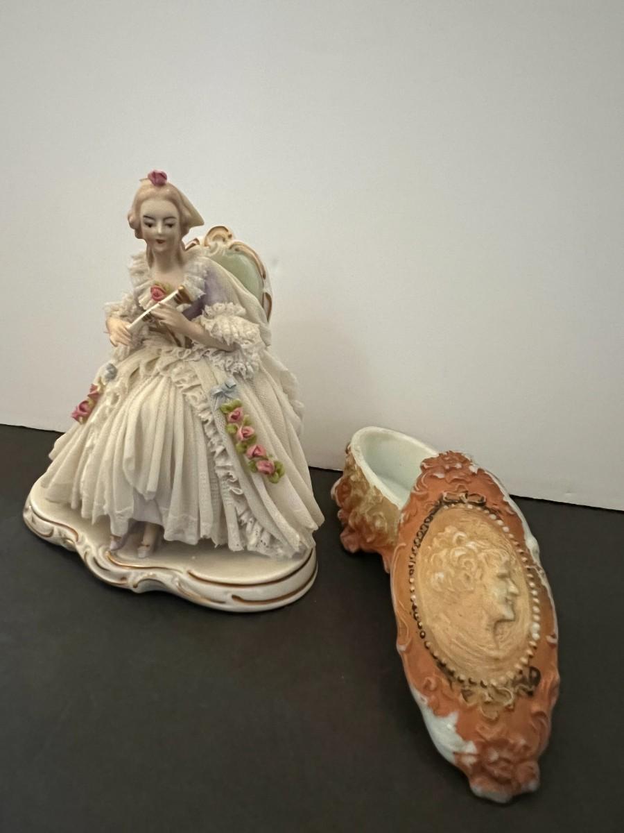 German Porcelain Lace Figurine & Cameo Trinket Dish