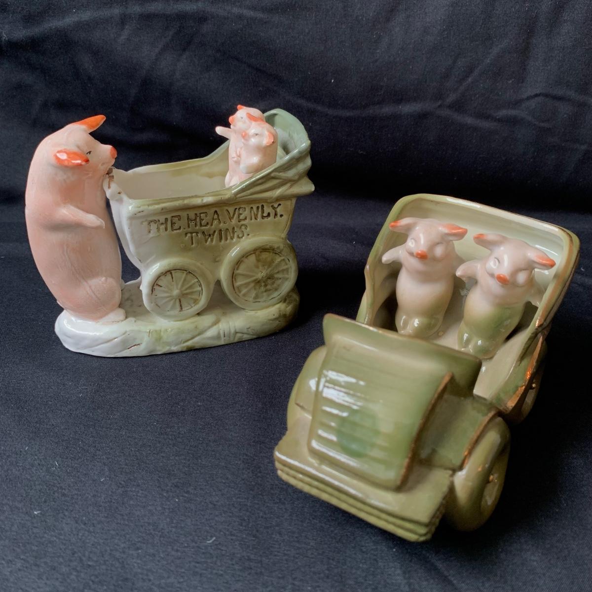 German Porcelain Fairing Pig Figurines, incl 'Heavenly Twins' (UB3-DZ)