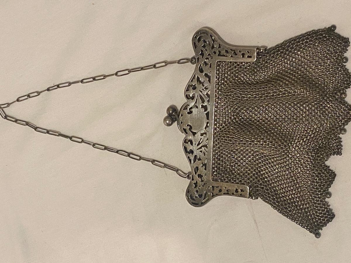 VINTAGE GERMAN SILVER MESH PURSE MARKED G. SILVER