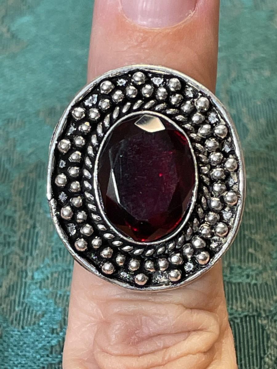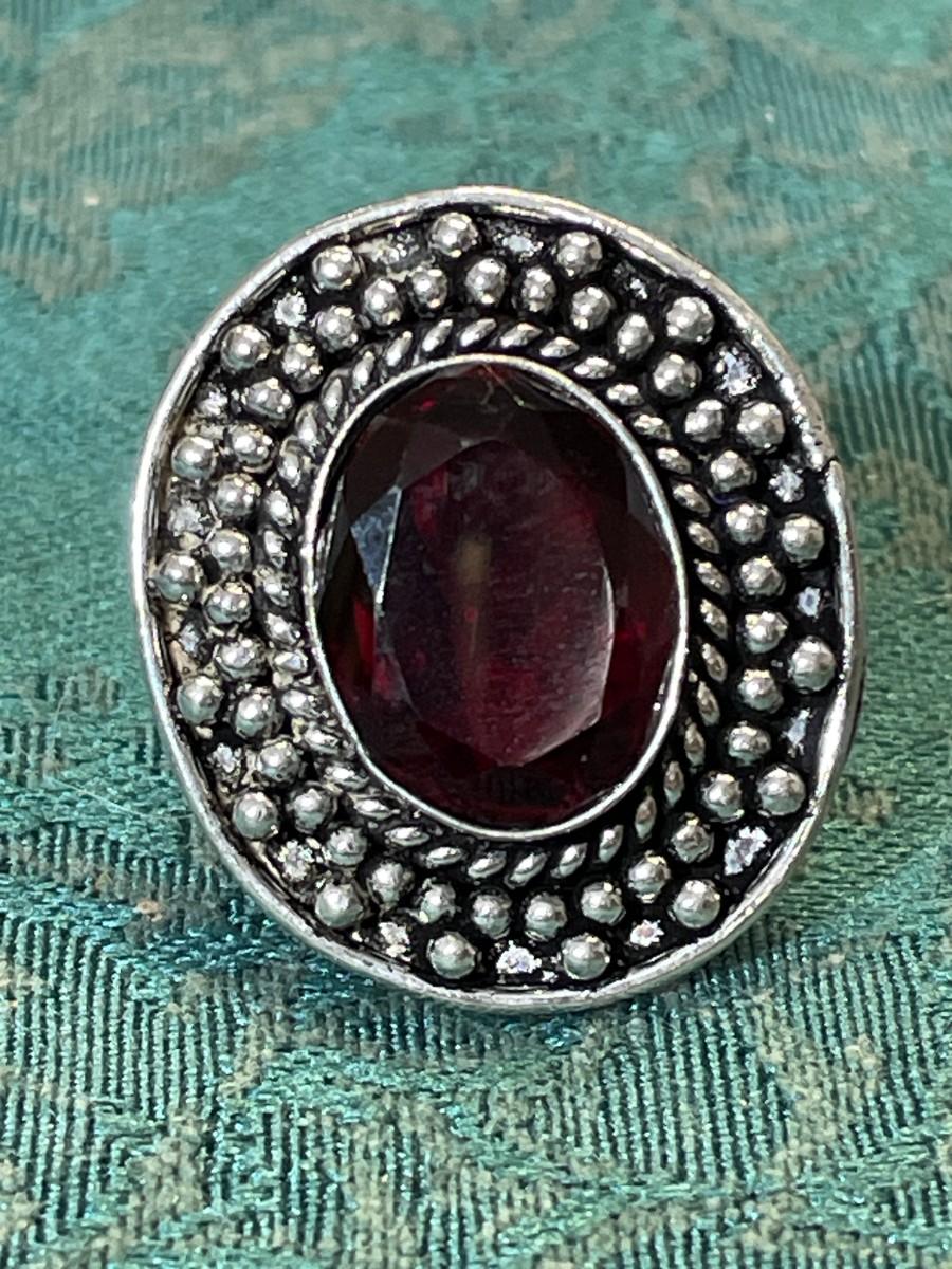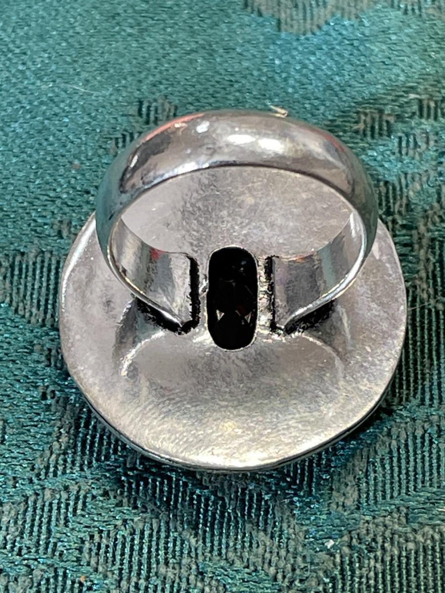 This ring is about a size 5.75 with a sestting of about 1.25" long. It is not marked, but the consignor was told that it is German silver.
