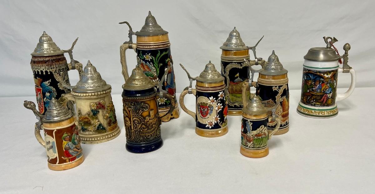 Total of 10 pieces. Some may be pre-war. One is a music box. Age related wear. No obvious chips or cracks. Measurement of largest: 11.5"H. [ML]