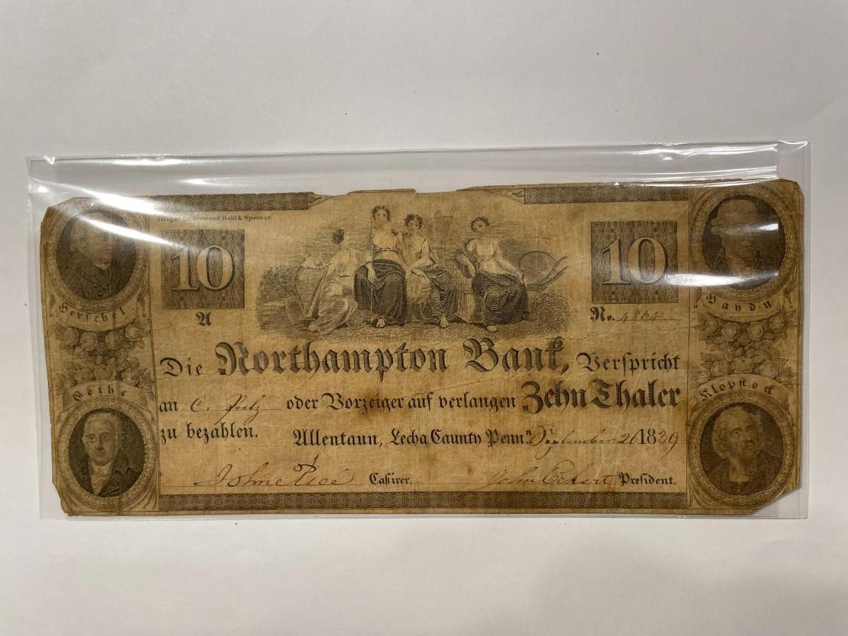 (German Text) $10 1839 Northampton Pennsylvania PA Obsolete Currency Bank Note Bill Scarce Issue in Circulated Condition. FREE DOMESTIC SHIPPING.