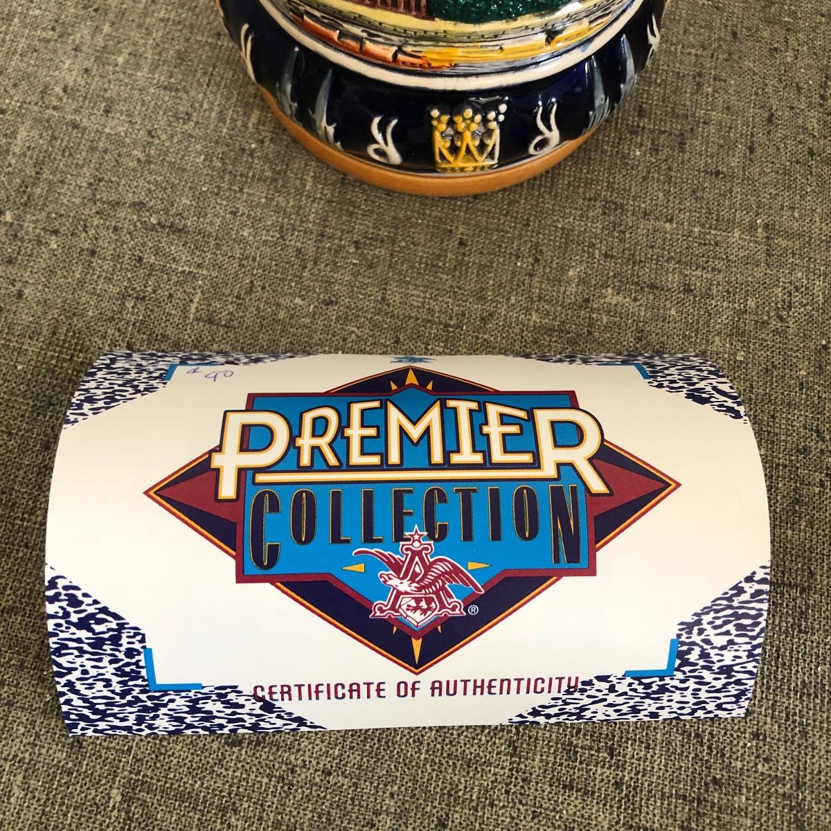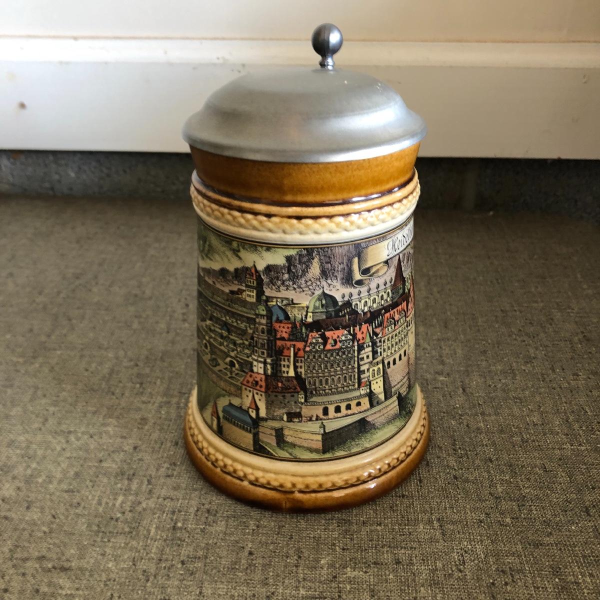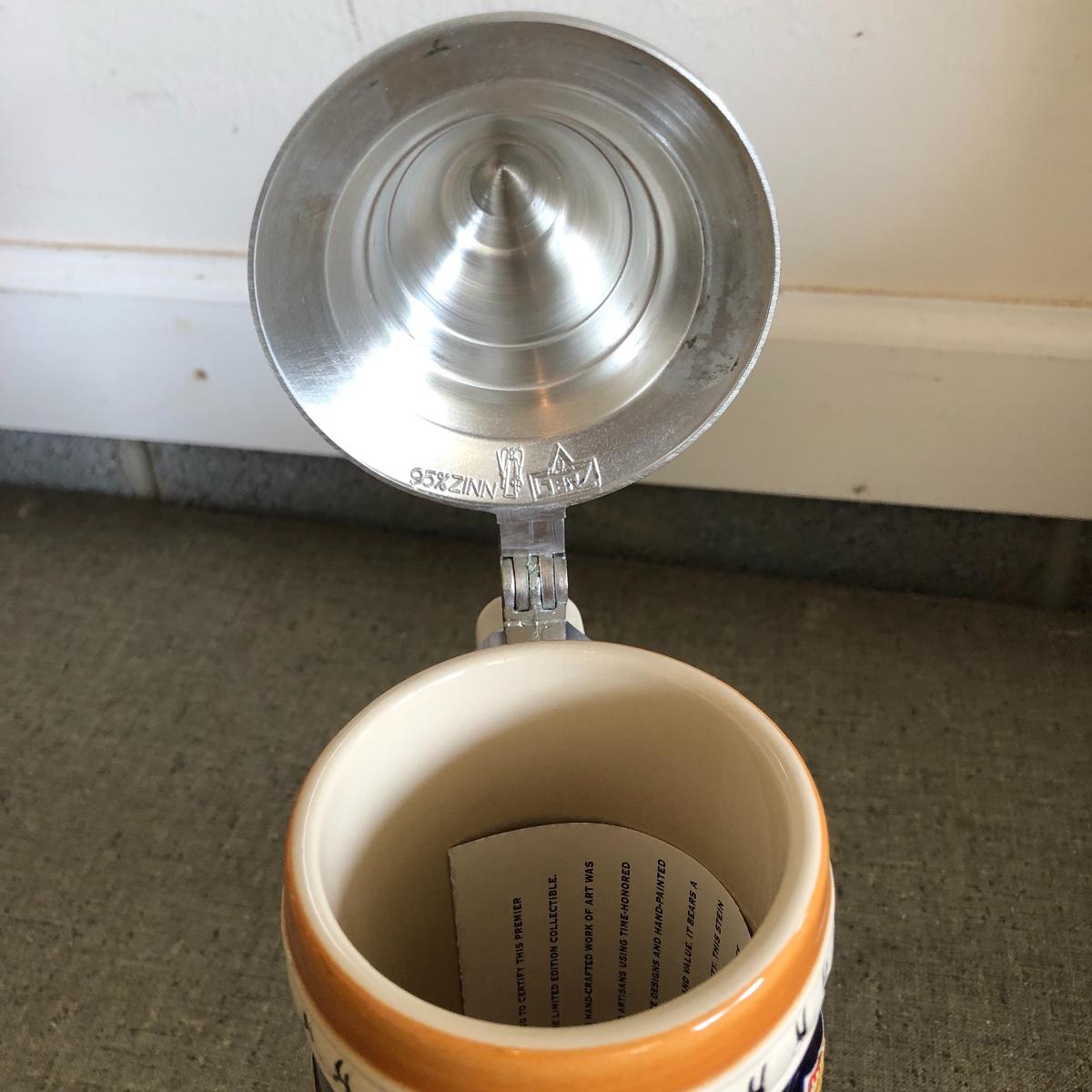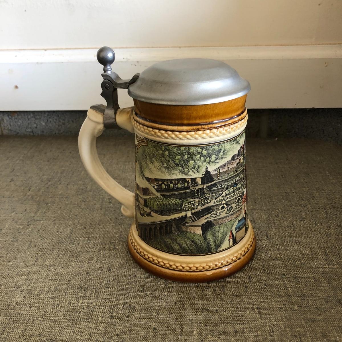Lot includes ceramic Anheuser Busch Cologne Numbered stein and a ceramic Heidelberg Stein marked Beyer West Germany. Largest Stein measures 3.5”D x 10” tall.
