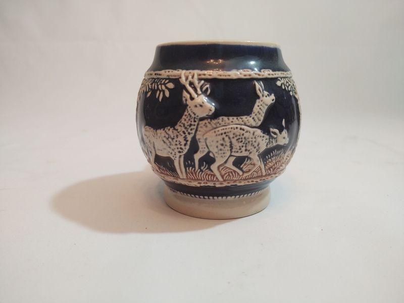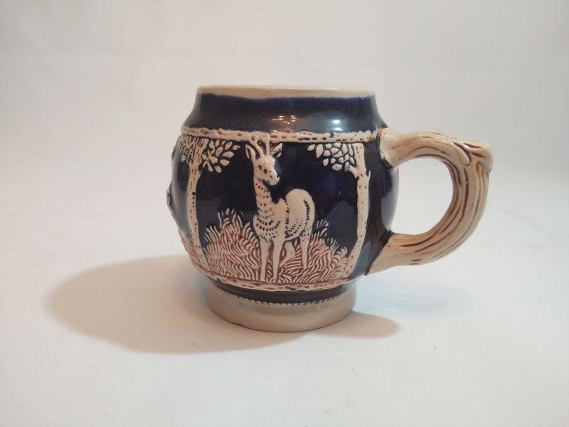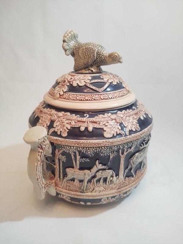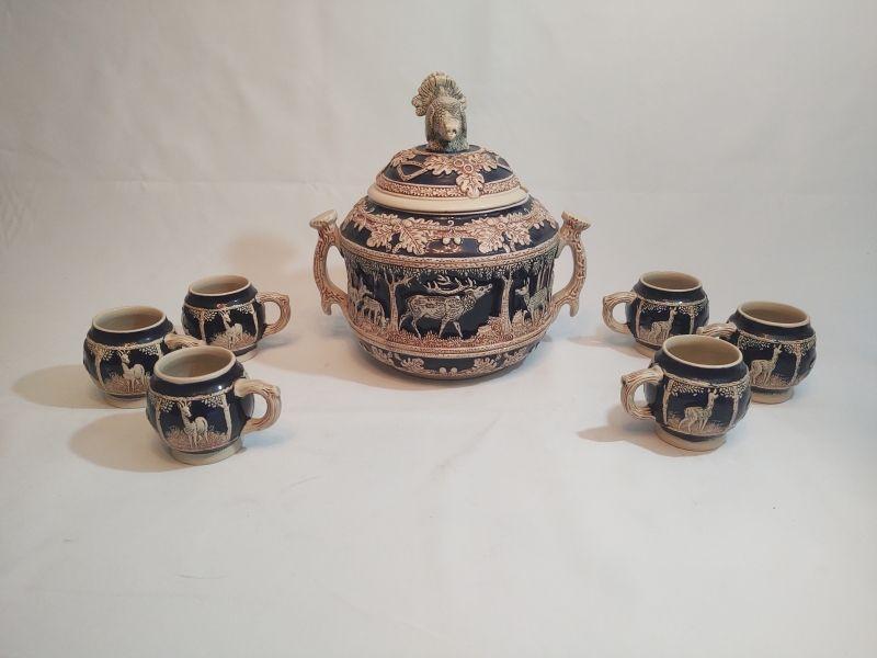 This punch bowl set includes a punch bowl with wildlife scene and 6 cups with wildlife scene. Bottom of mugs and punch bowl have the maker's mark and style number imprinted on the underside or each.