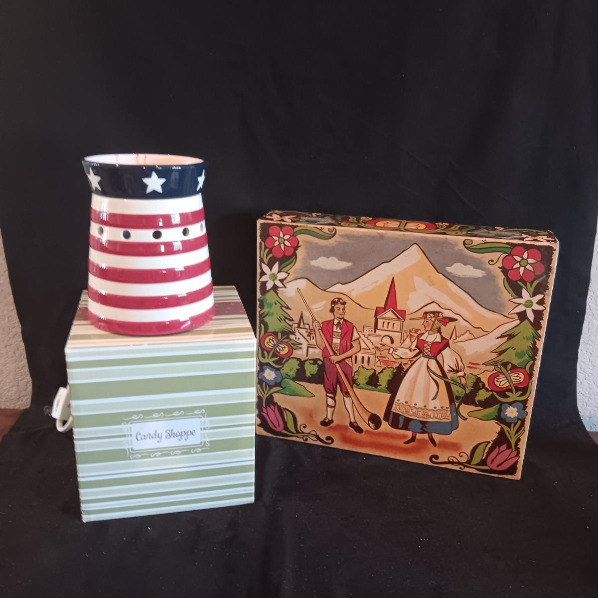 GERMAN WOODEN BOX AND A SCENTSY CANDLE WARMER