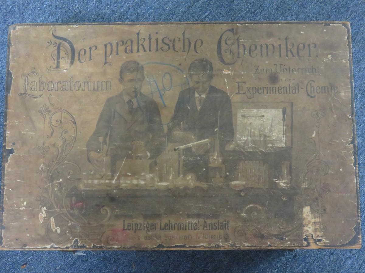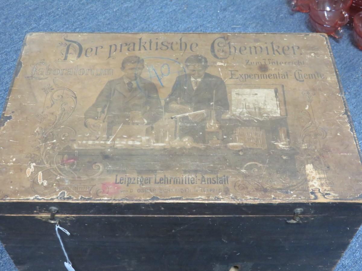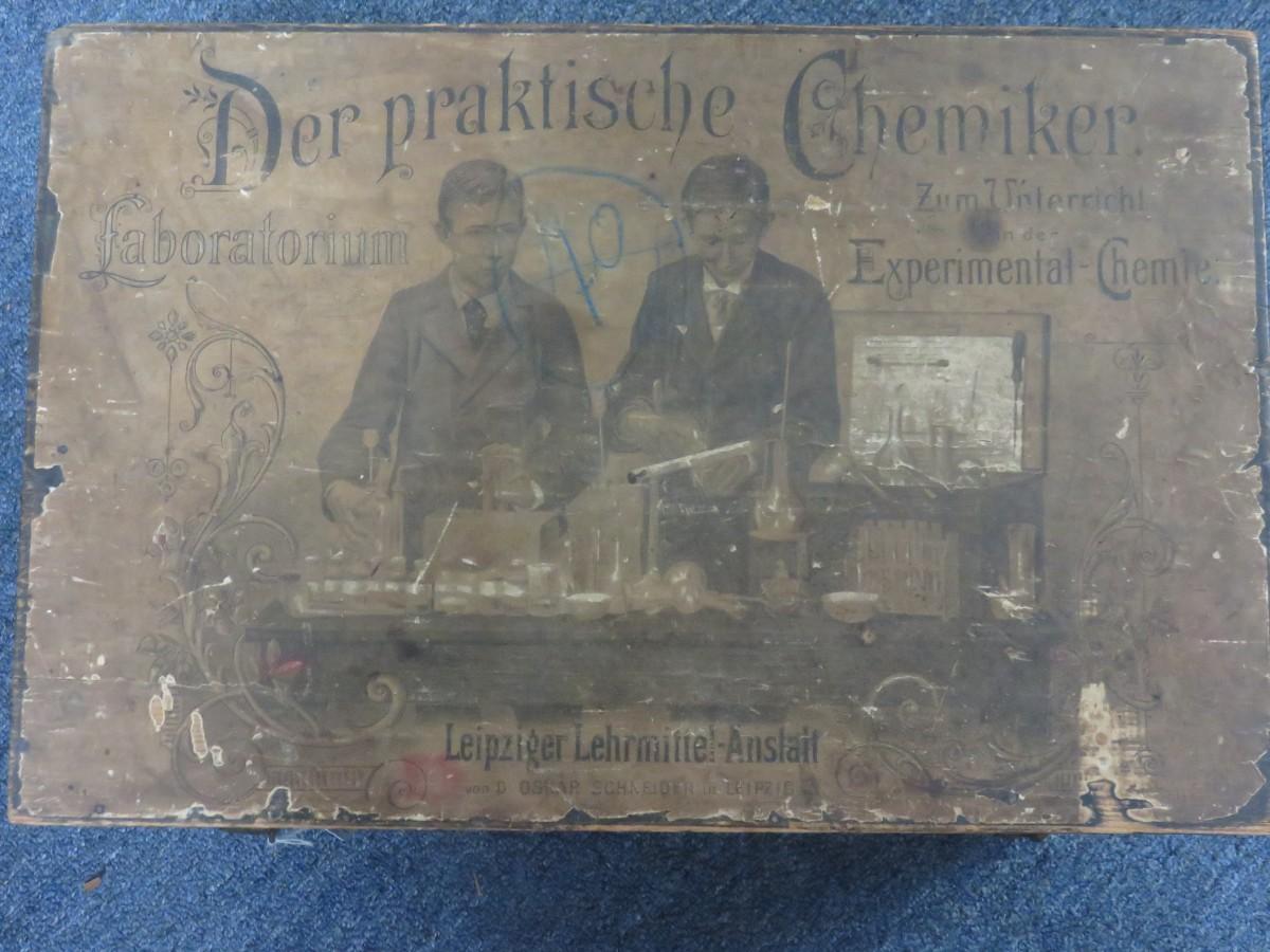 German Wooden Chemistry Box - 18 12/ x 12  inches - Great Graphics inside lid