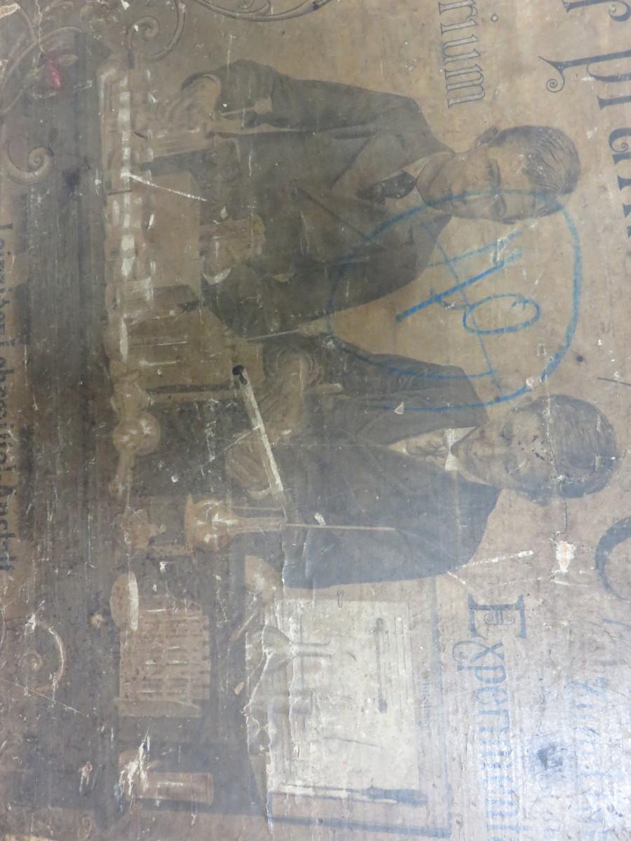 German Wooden Chemistry Box - 18 12/ x 12 inches - Great Graphics inside lid