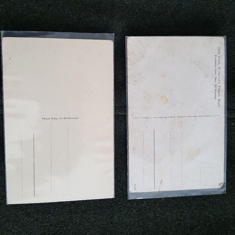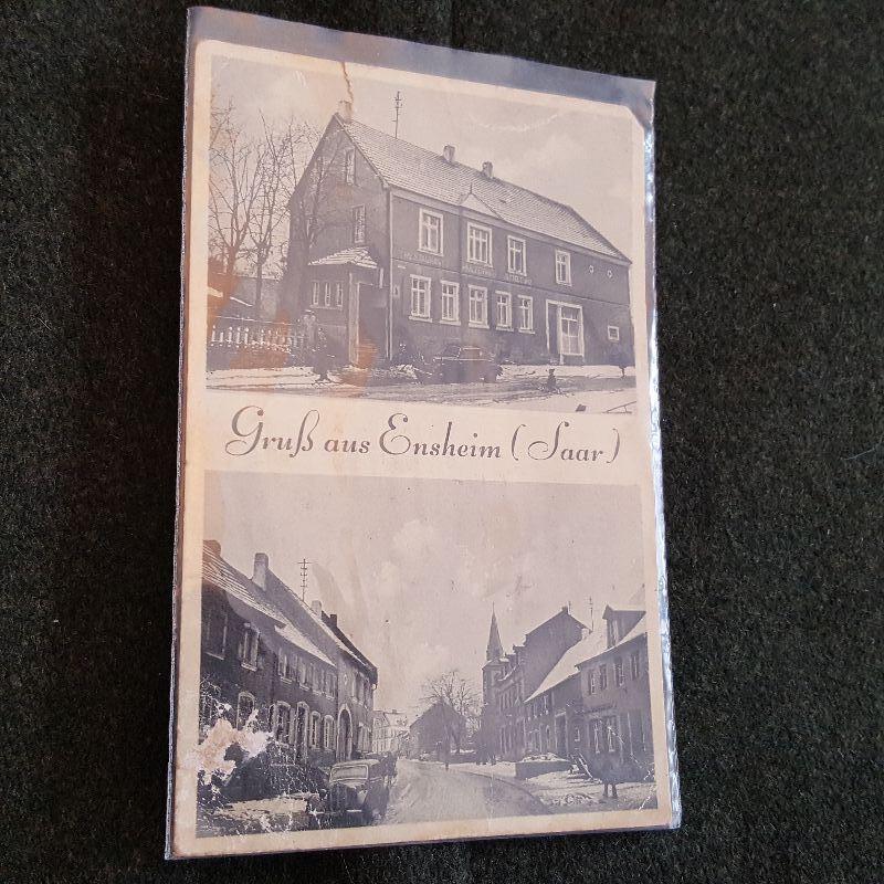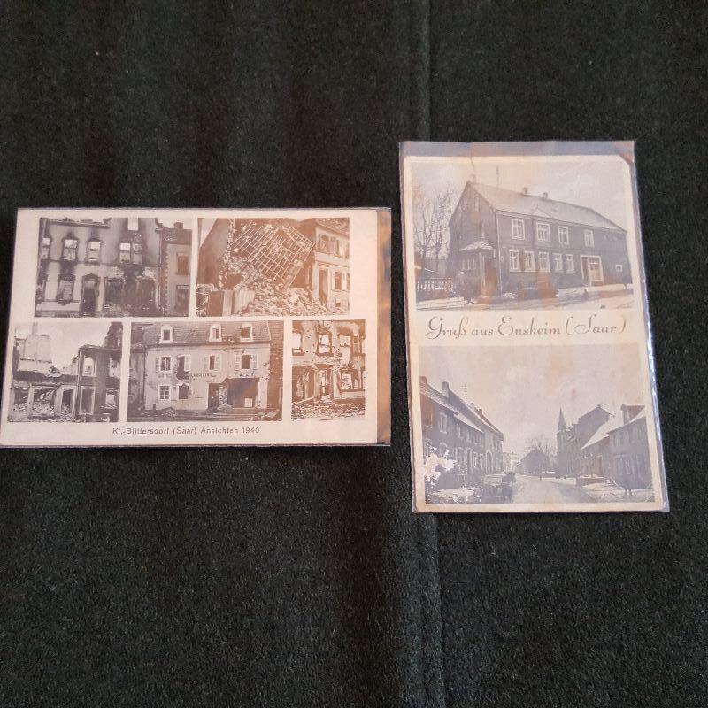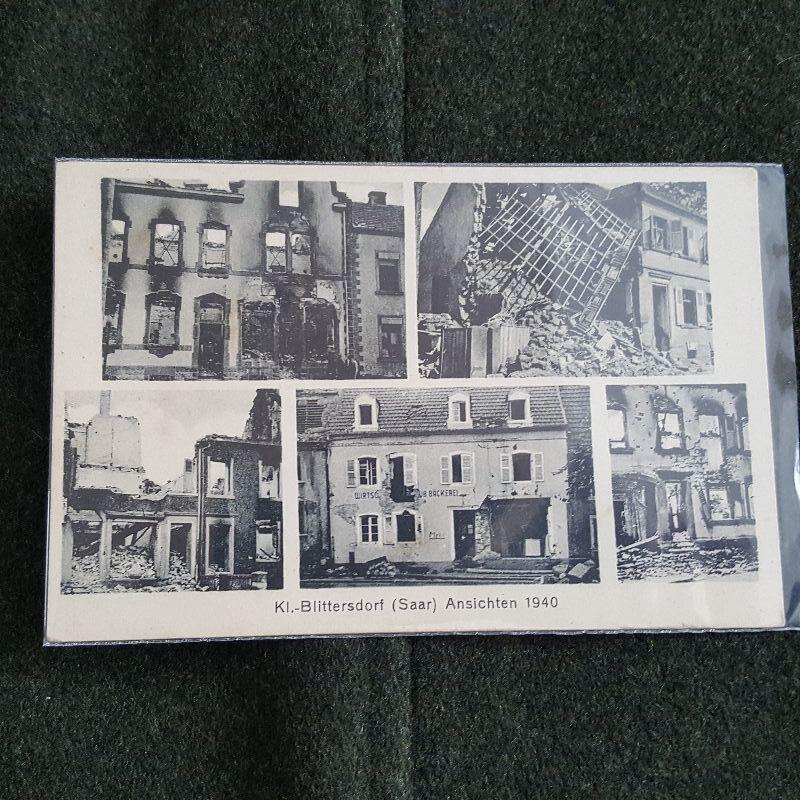 This auction lot is for a photo of German WW2 War Rubble. It shows the damage incurred in Blittersdorf (Saar) Ansichten in 1940. there is no writing or postmark on the back. The card is in good condition for its age. Additionally this lot include a rough photo postcard of a house and the town of Grub aus Ensheim (Saar)