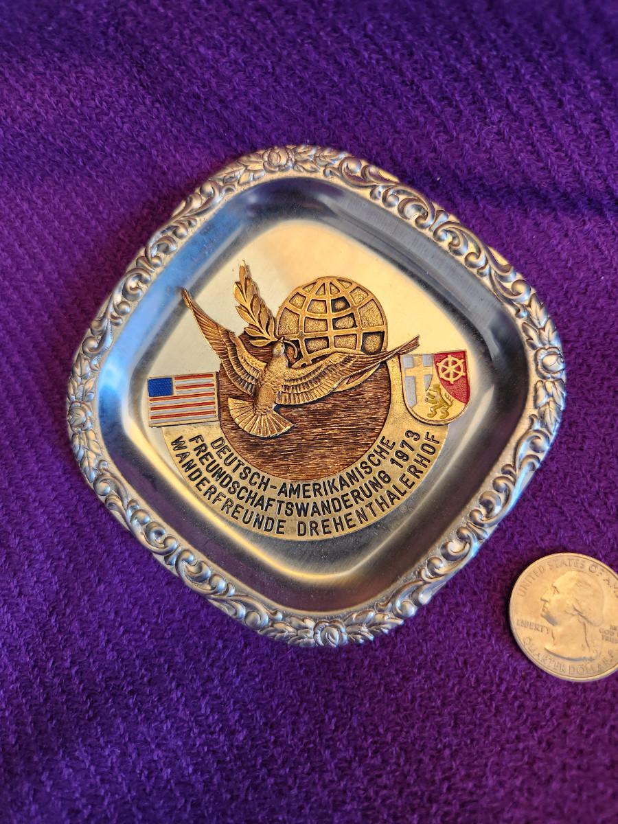 This auction lot is for a GERMAN VOLKSMARCH MEDAL/PLAQUE This medal/plaque is from the 1973 German-American Friendship March in Drehenthalerhof.
