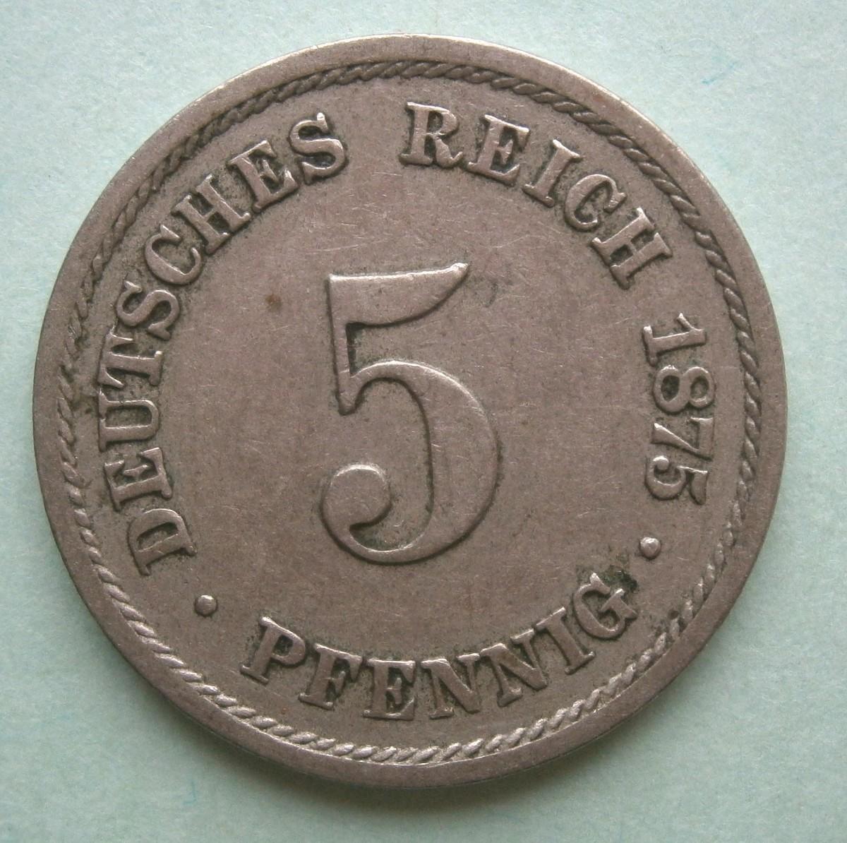 GERMANY 1875B 5 Pfennig Coin, nickel alloy, 17mm