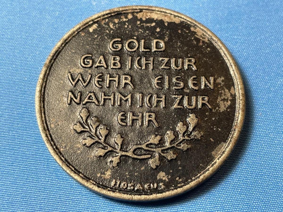 GERMANY 1916 "GOLD FOR IRON" MEDAL/TOKEN "IN EISERNER ZEIT" WWI ERA AS PICTURED. $5 DOMESTIC SHIPPING.