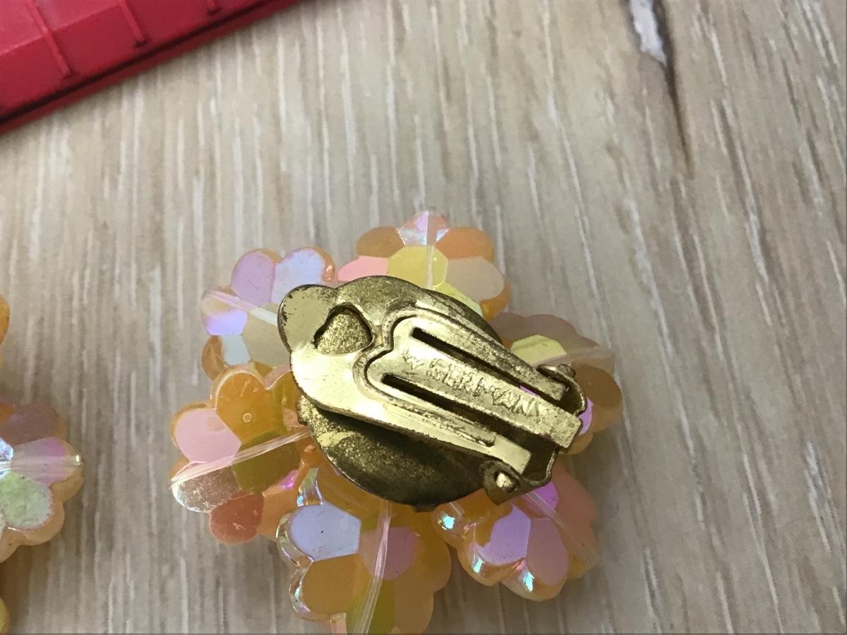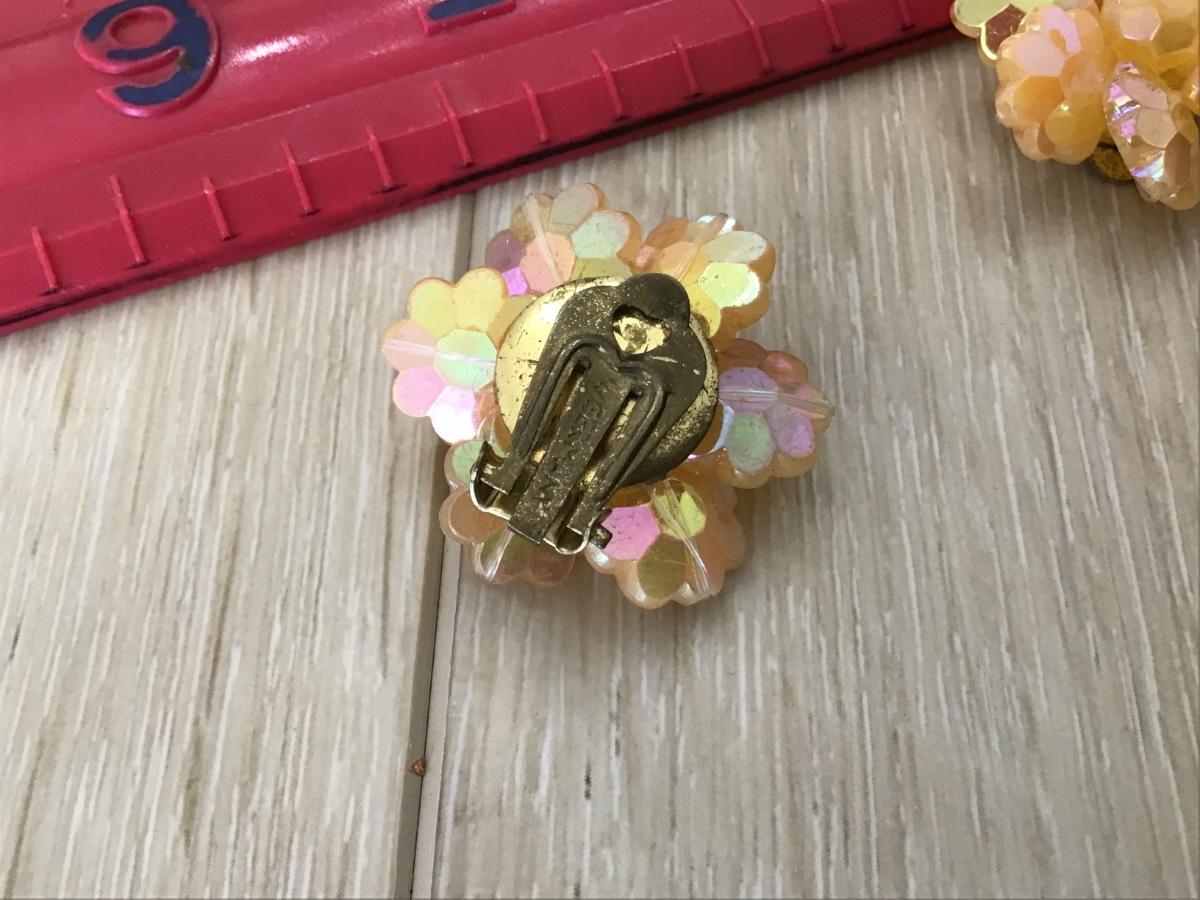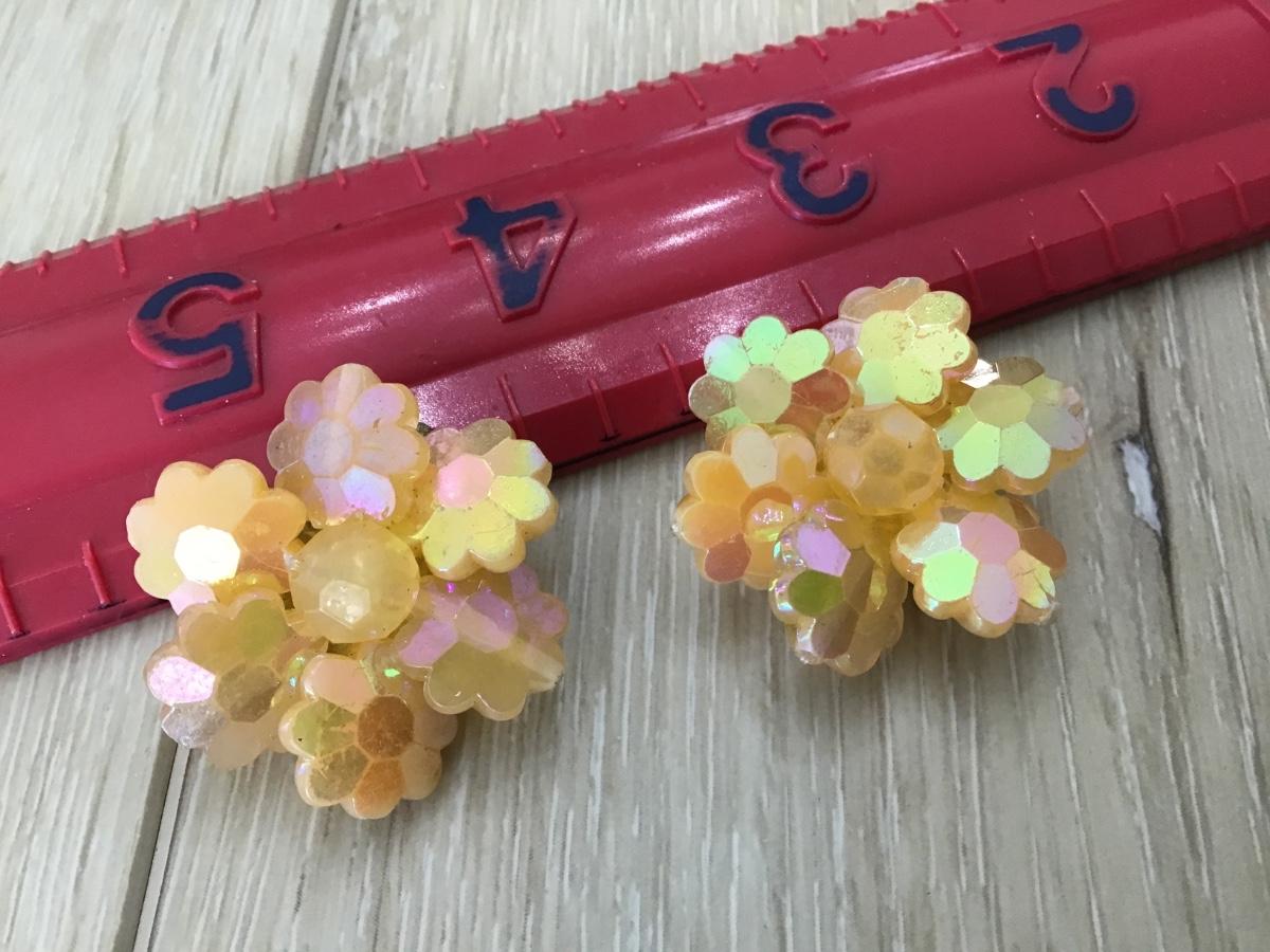 Germany Marked Vintage Peach Iridescent/Bead Cluster Clip on Earrings