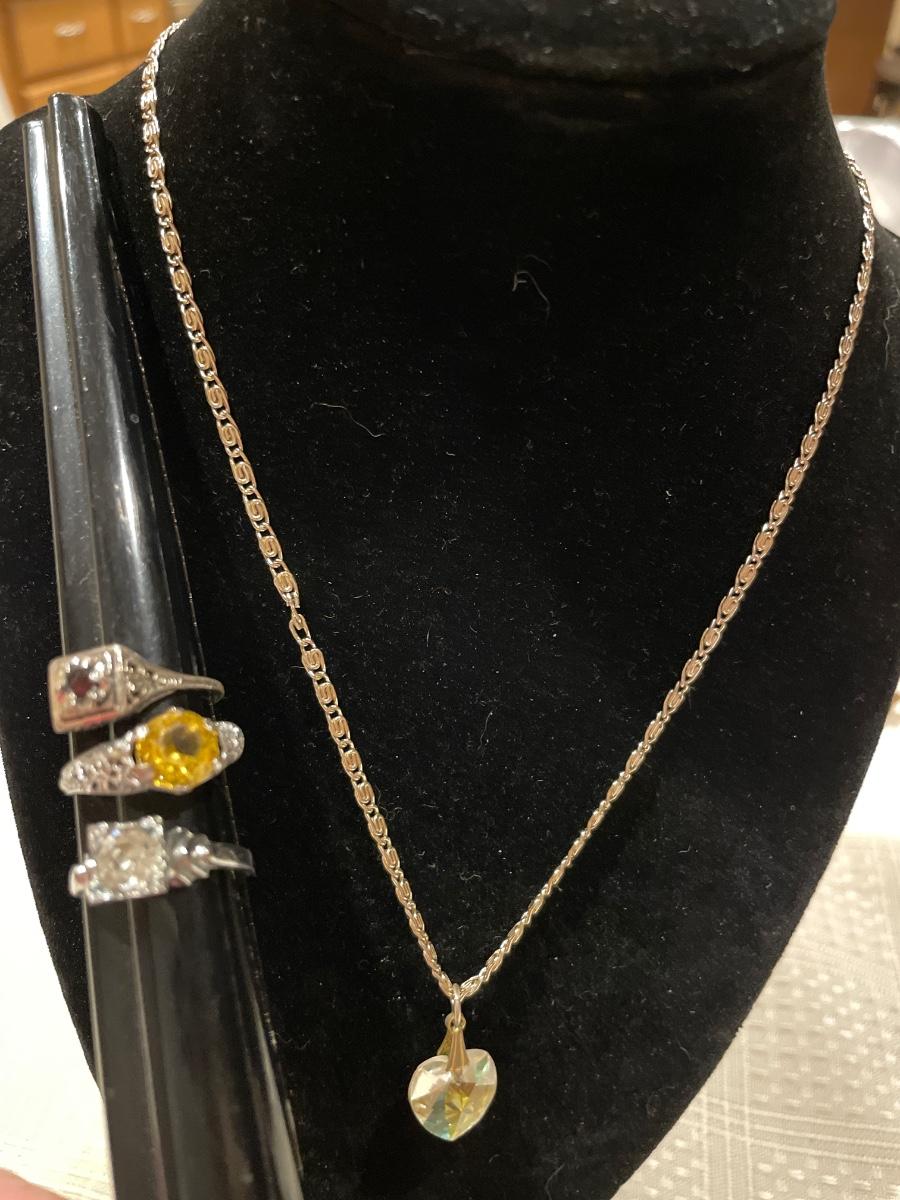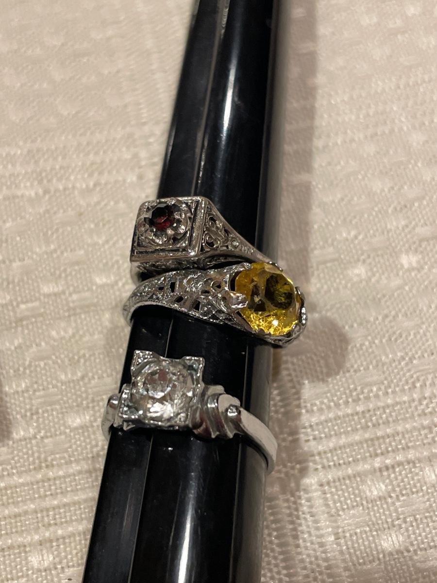 Necklace and bracelets stamped Germany & includes three costume rings in small case.