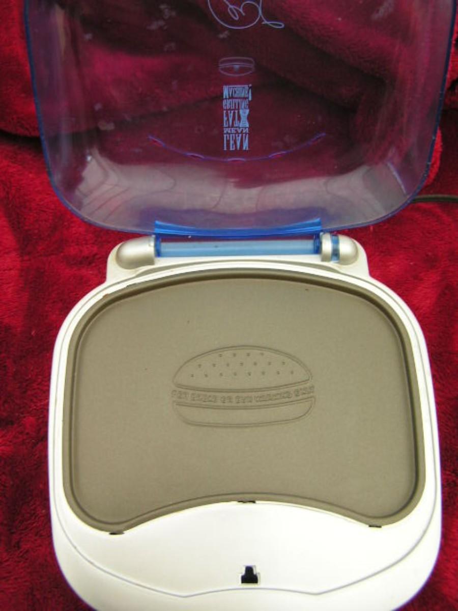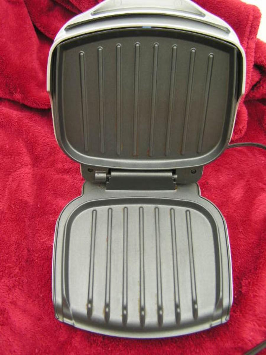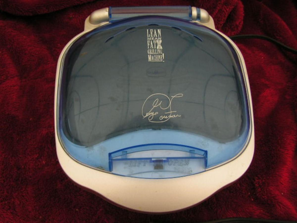 George Foreman Grilling Machine. “Lean Mean Fat Reducing Grilling Machine!” W/ bun warmer in top. It MIGHT have been used but it doesn’t show it.