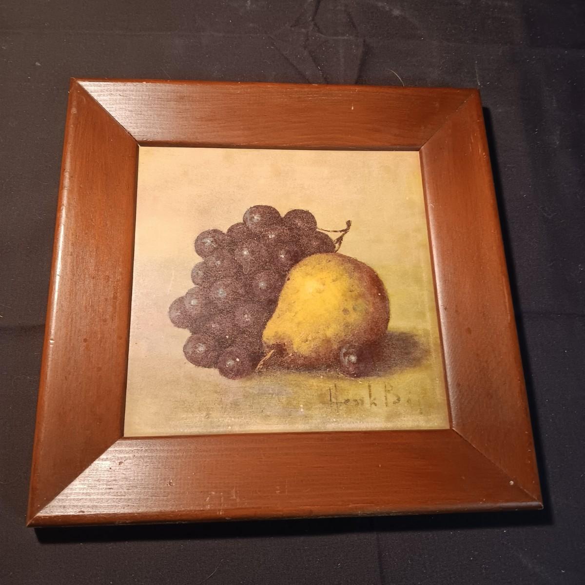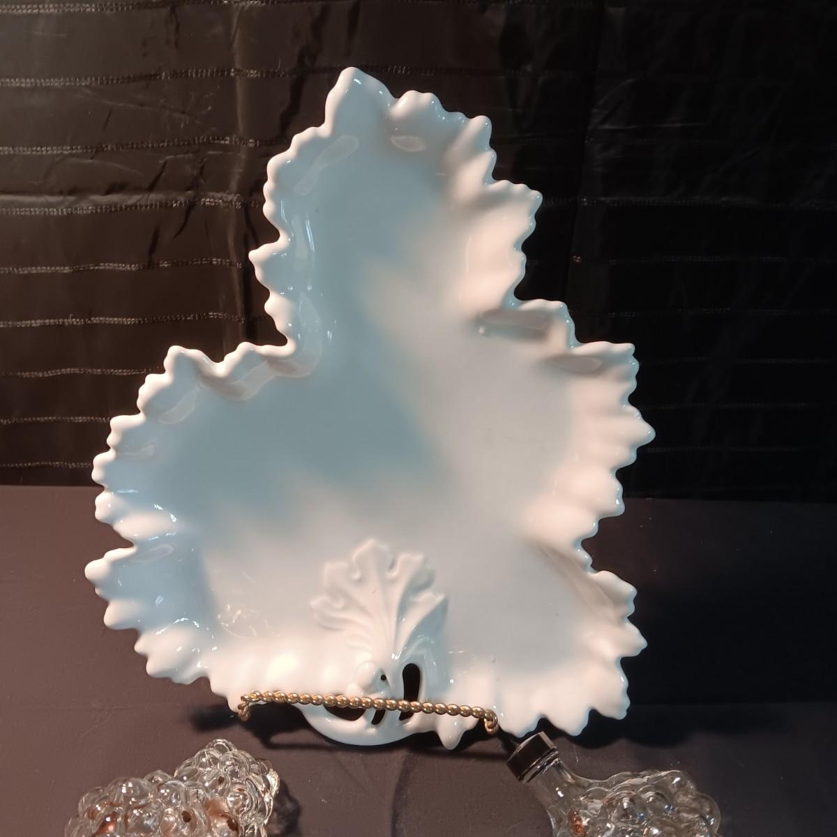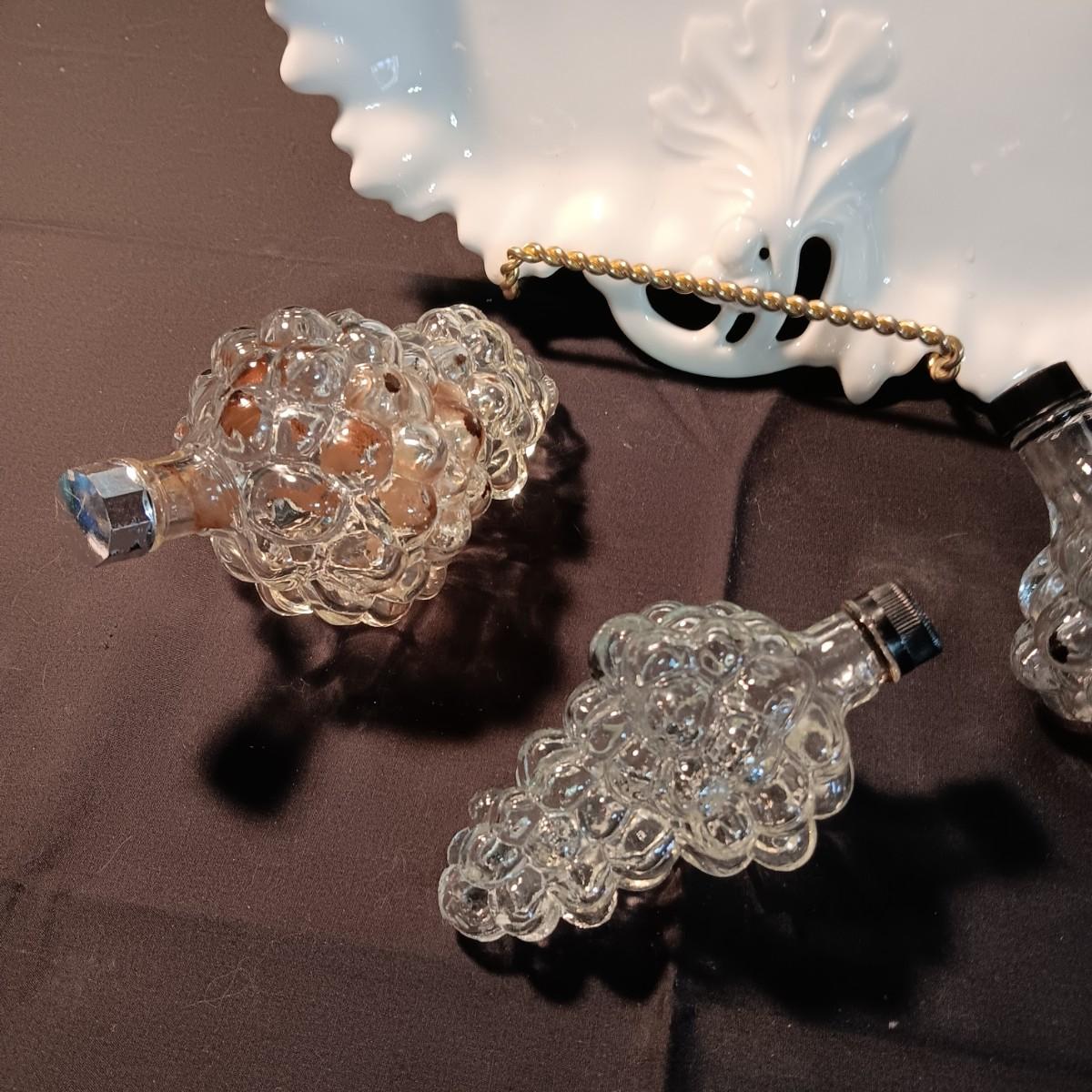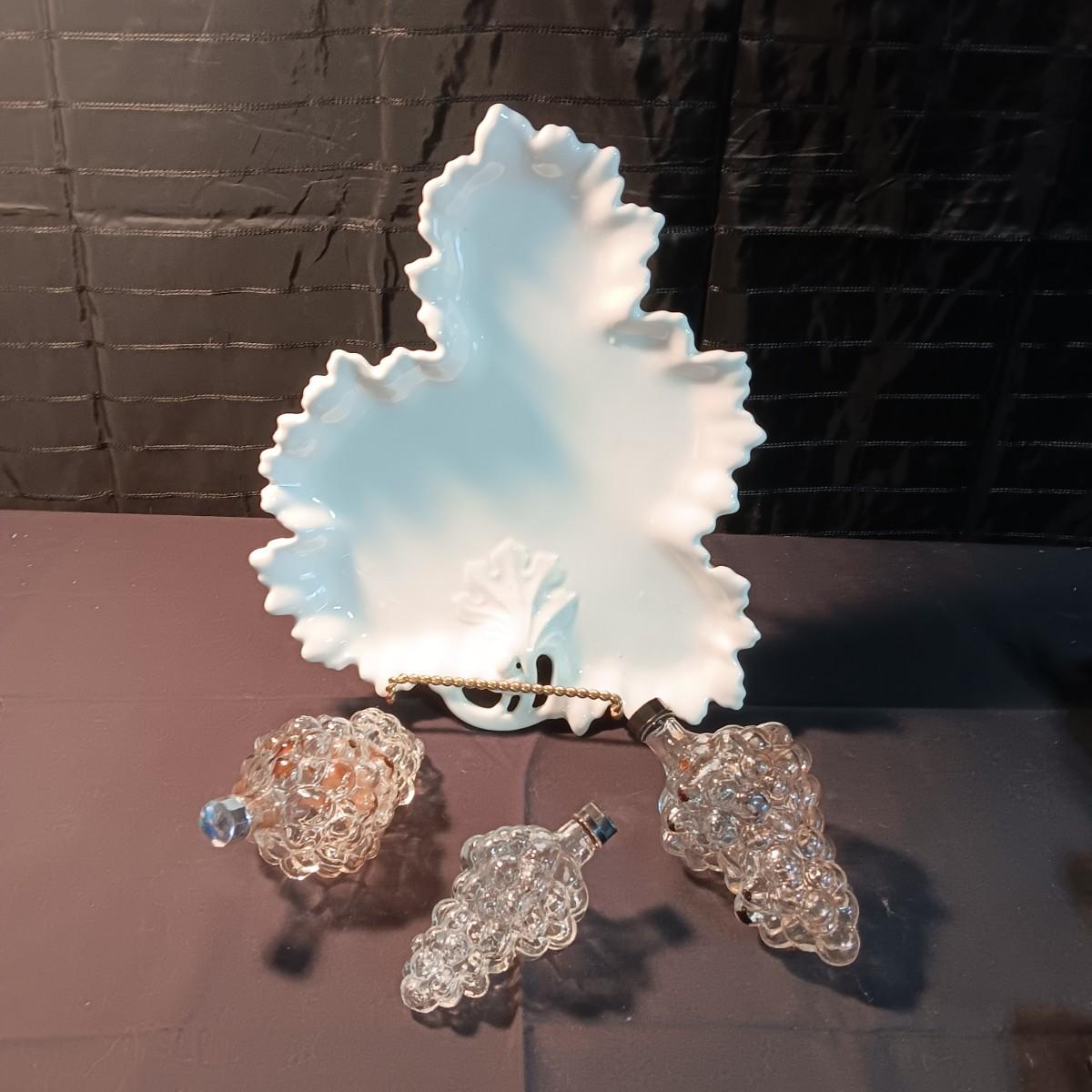GEROLD PORZELLAN MILK GLASS DISH FROM WEST GERMANY, GLASS GRAPES AND WALL HANGING
