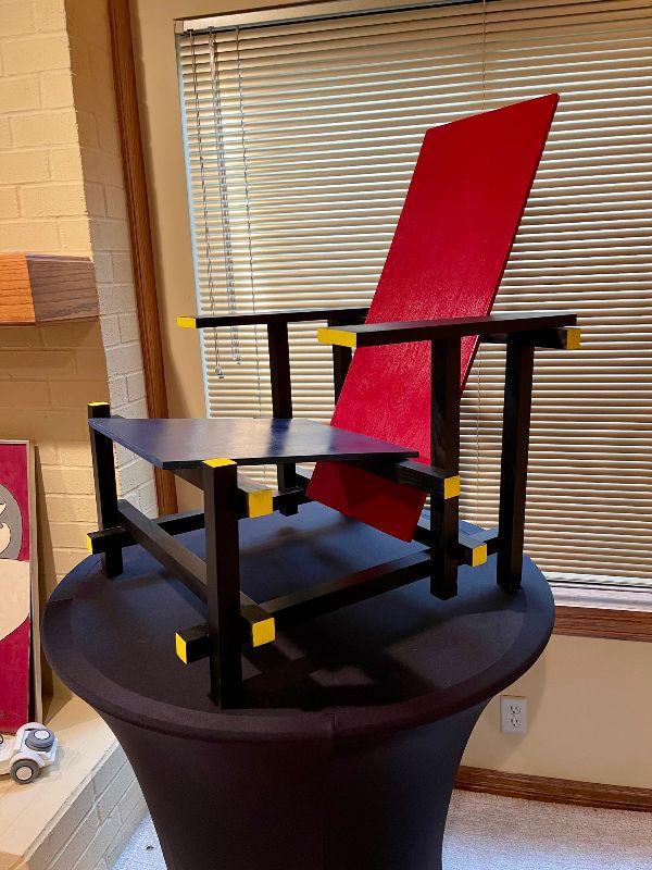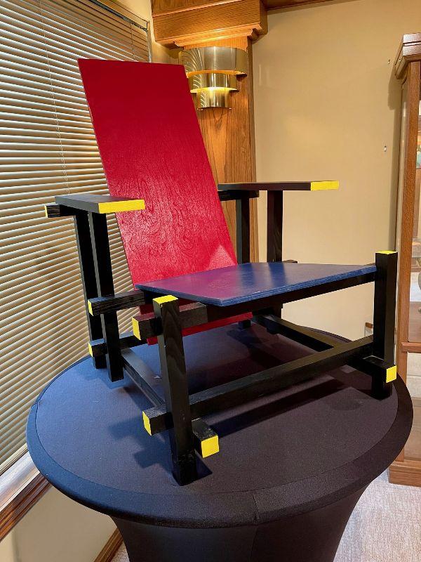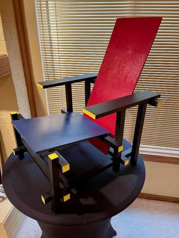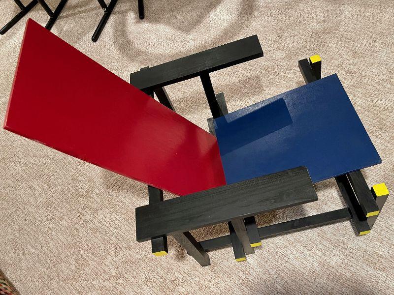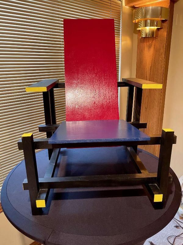 Gerrit Rietveld Red and Blue Chair 1917 Copy by Wichita Architect Kevin Spurgeon